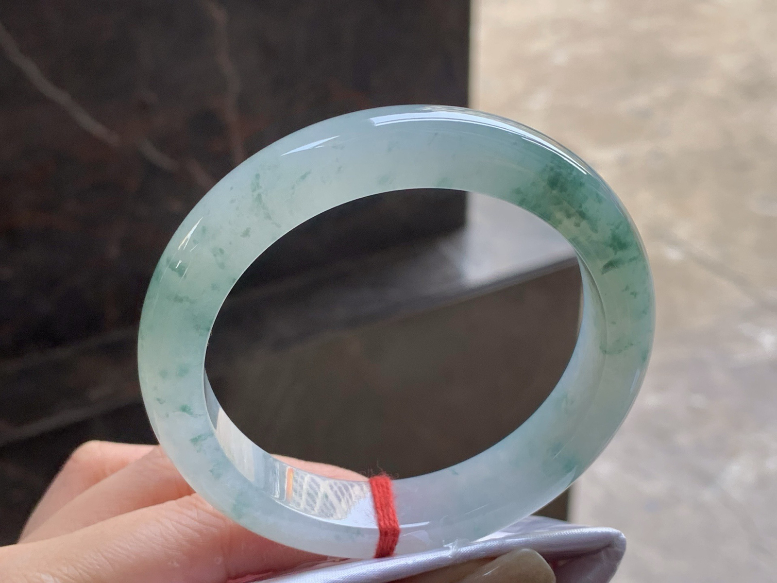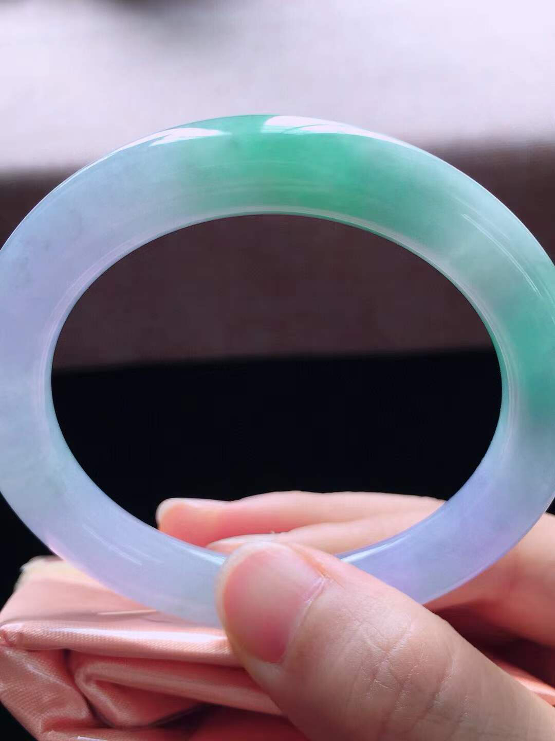 A货天然翡翠冰糯种浅绿手镯58.4圈重量76.67 3月9日
