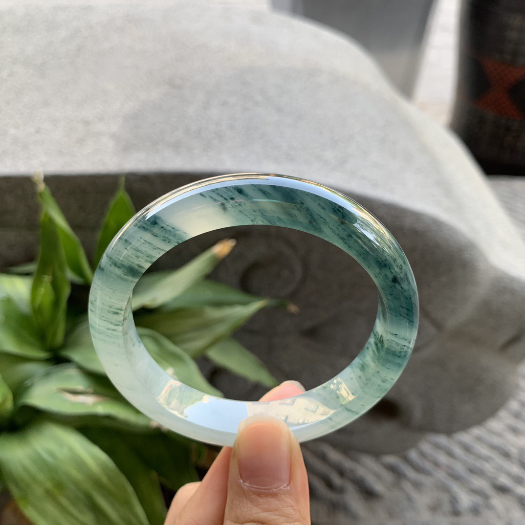 圈口56.3-11.8-8 【冰种飘花正圈手镯】正圈56 57可戴
