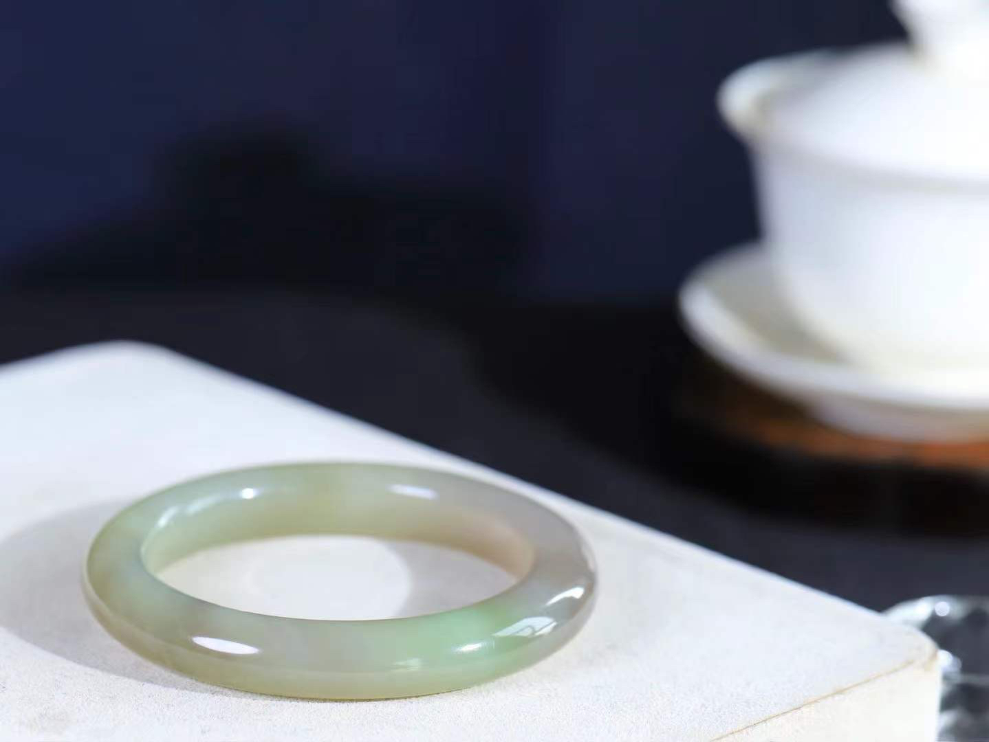 55mm自然光拍摄天然翡翠浅绿秀气好种水正圈手镯57.55 克