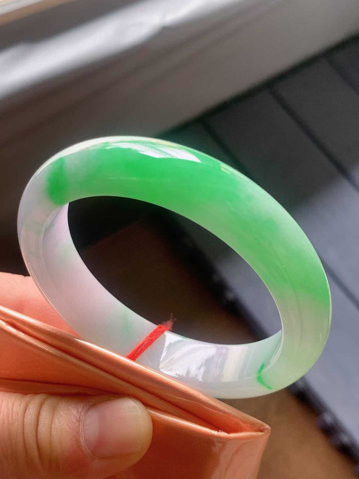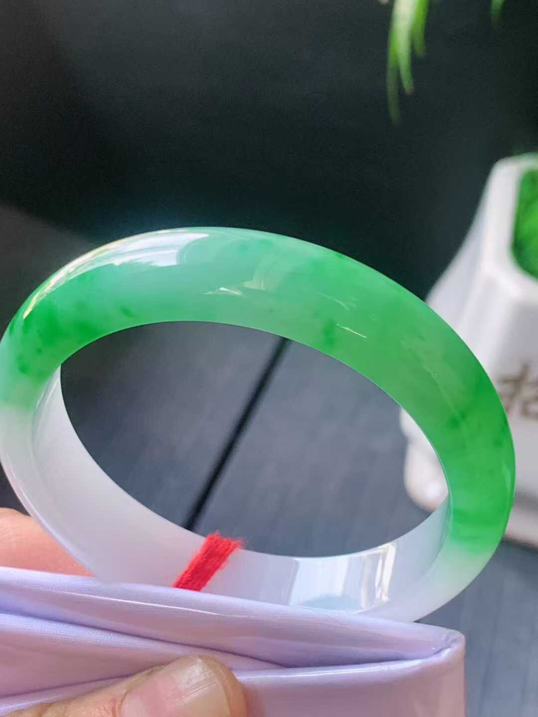 【翡翠名称】老种冰飘阳绿51.5正圈口手镯 【翡翠尺寸】51.5/12.5/6.6mm适合50.5-
