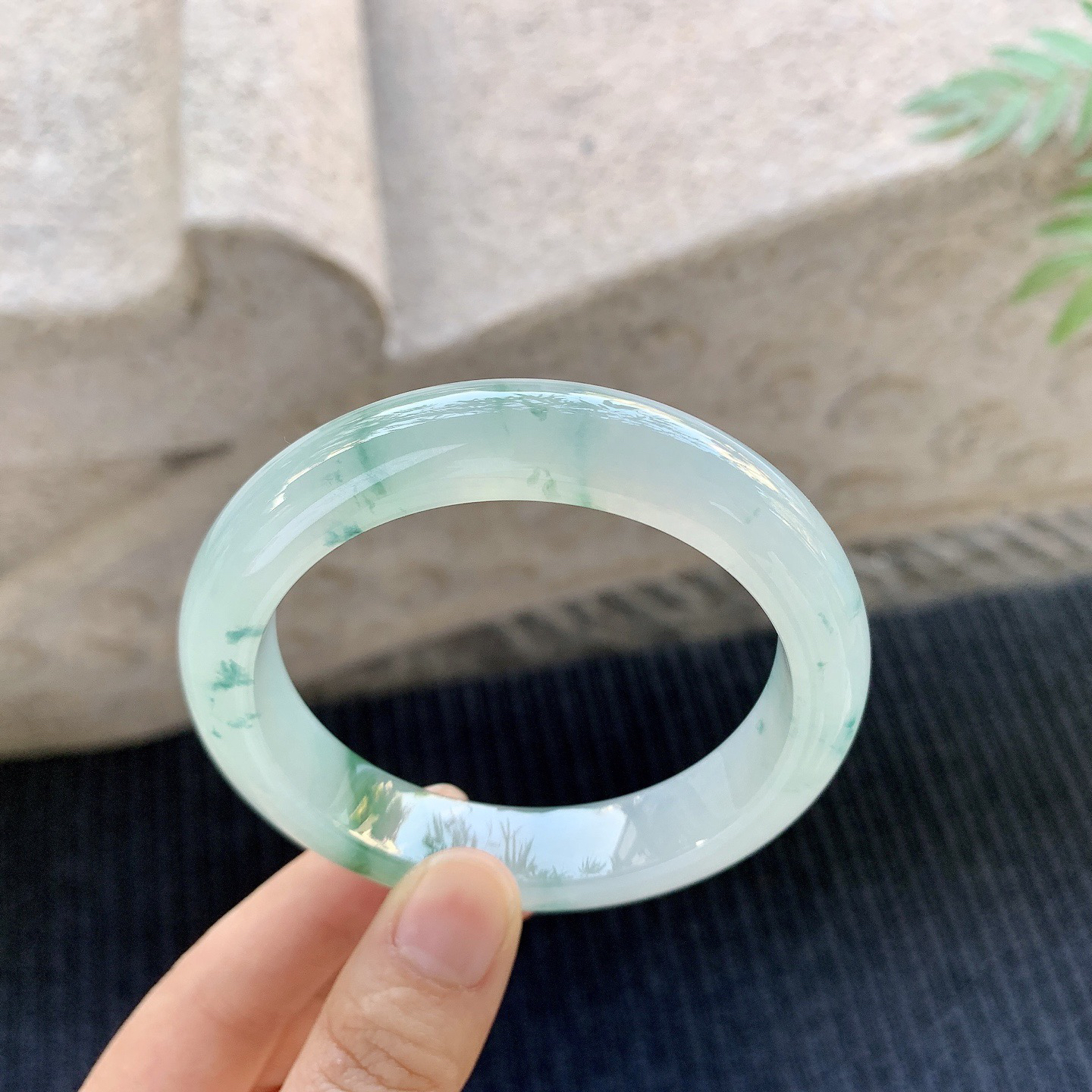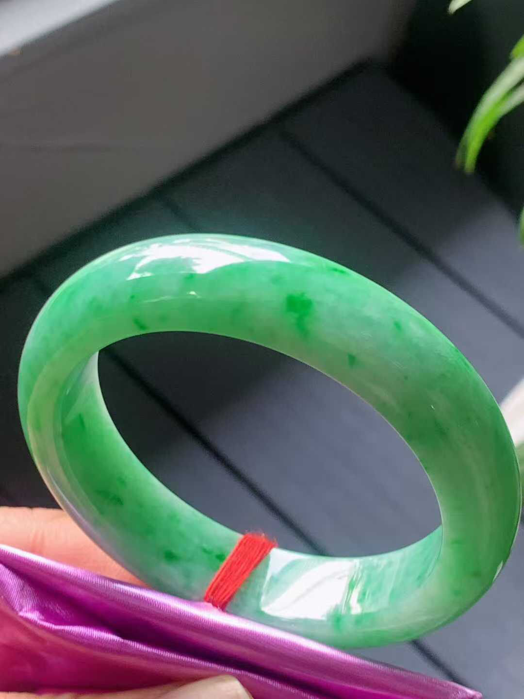 【翡翠名称】老坑种飘绿花54正圈口手镯 【翡翠尺寸】54/13.5/8.7mm适合53-55正圈口佩