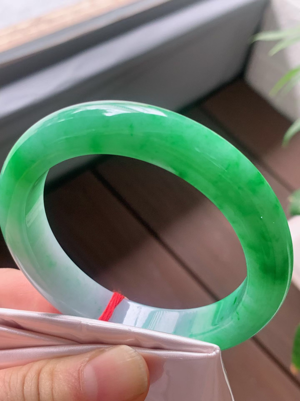 【翡翠名称】老坑种飘阳绿54.3正圈口手镯 【翡翠尺寸】54.3/11.4/9.2mm适合53-55