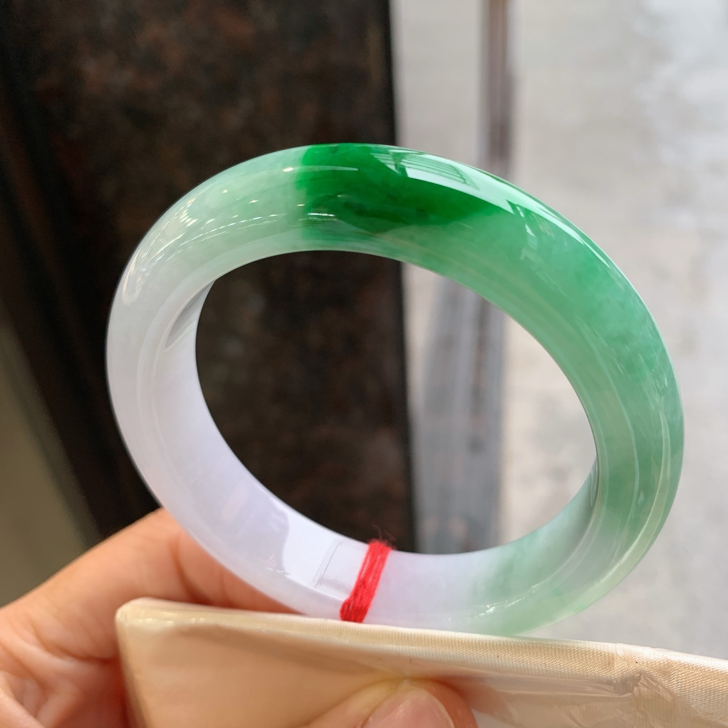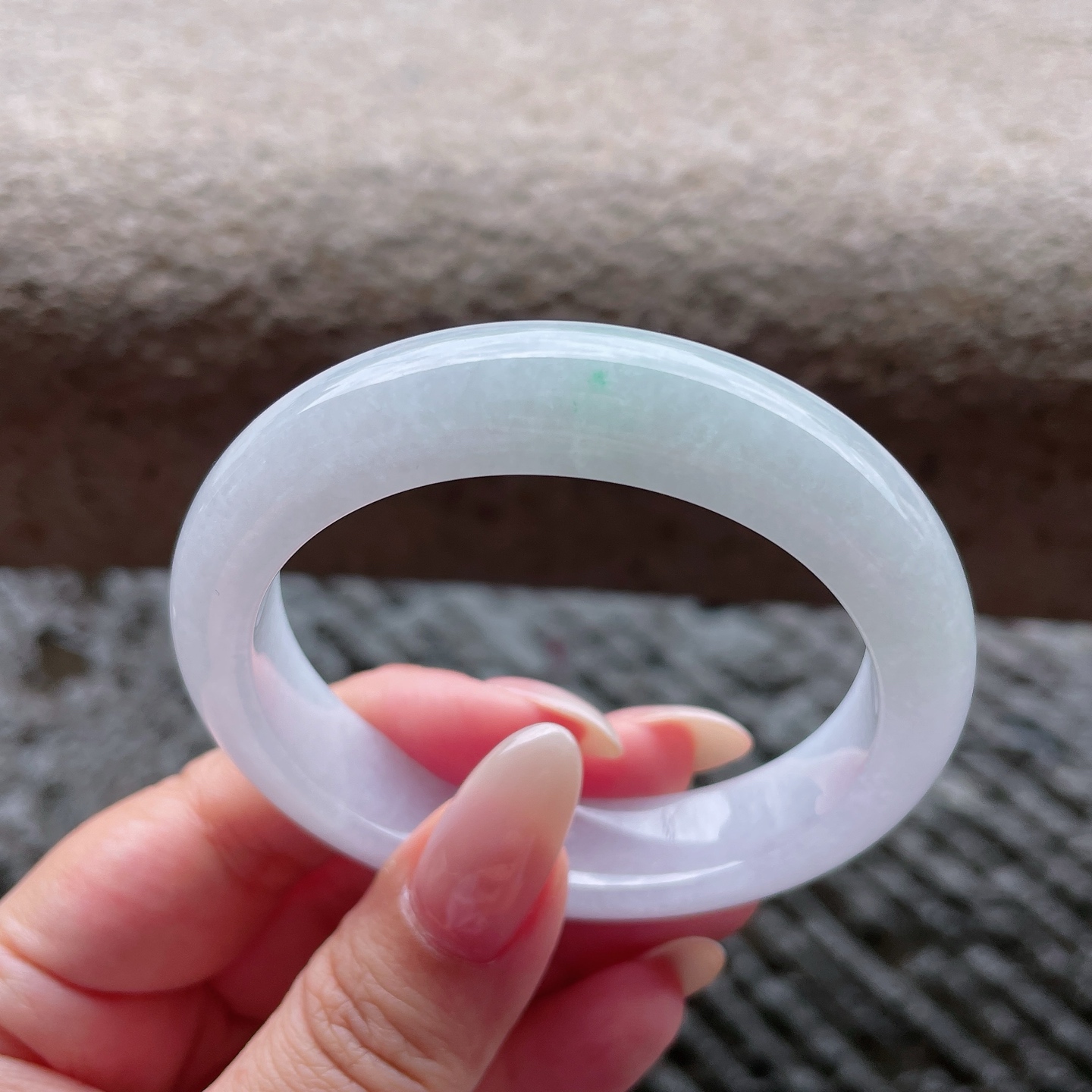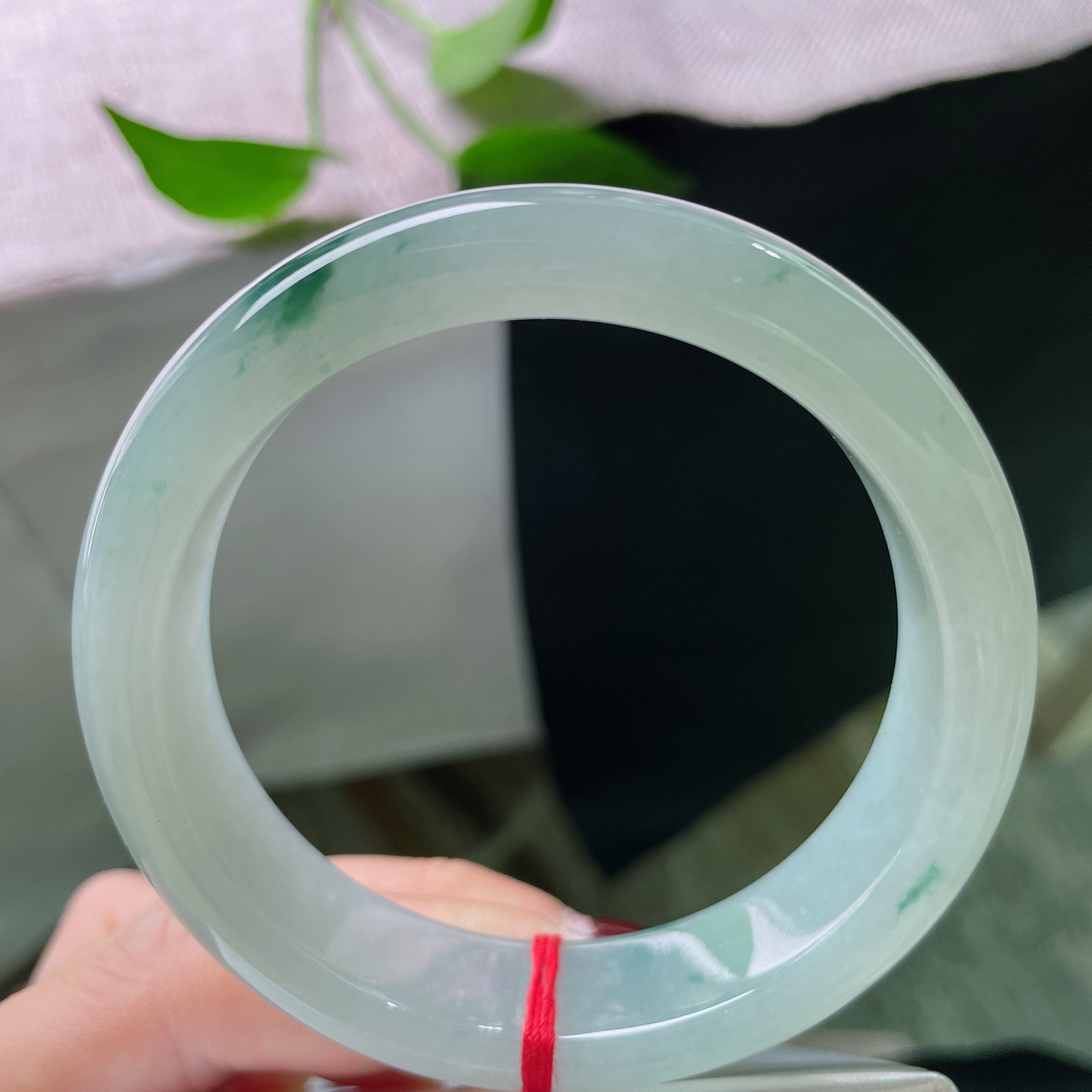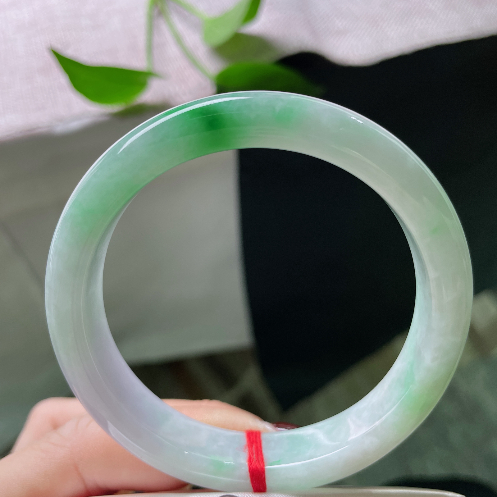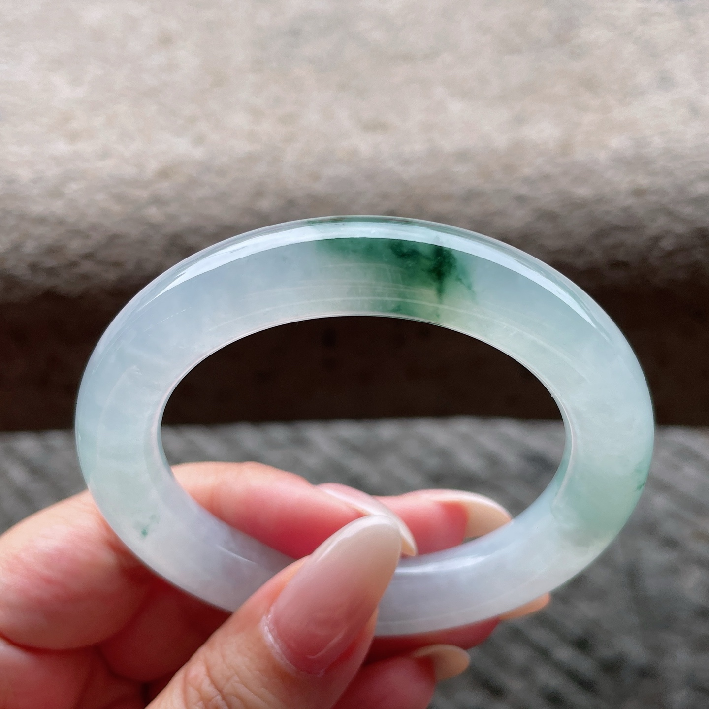 A货天然翡翠冰糯种飘花手镯59圈重量52.54 4月23日