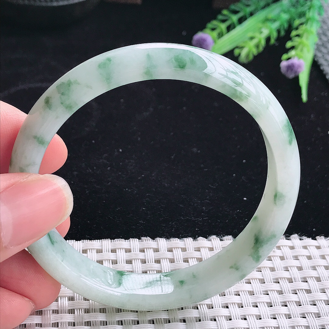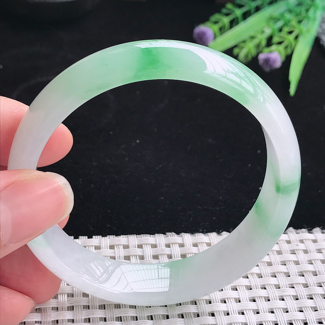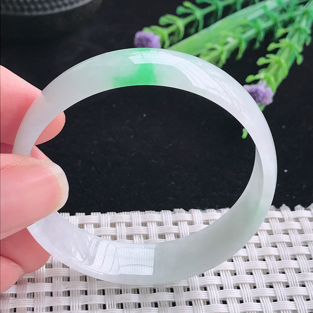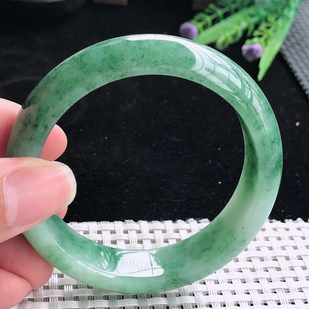 【翡翠名称】老坑种飘阳绿62大圈口手镯 【翡翠尺寸】62*12.2*9.6mm适合61-63正圈口佩