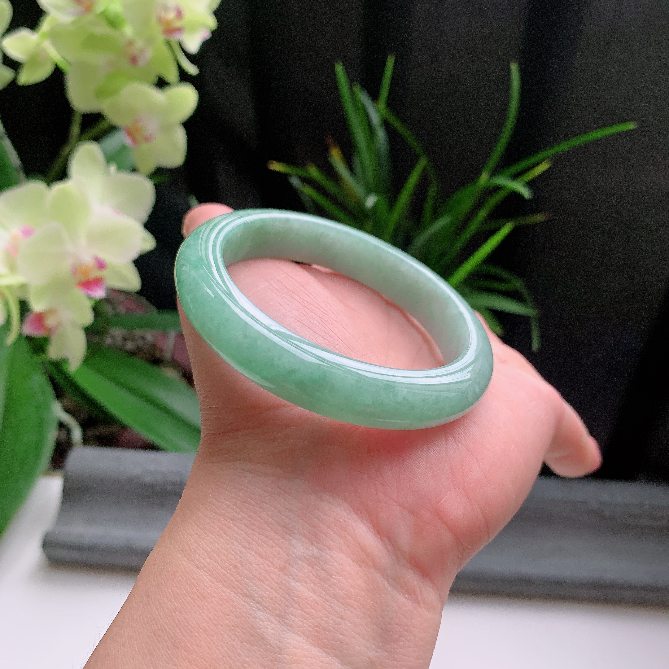 小圈口52.8-12.6-8.5 【芙蓉阳绿正圈手镯】正圈52 53可戴