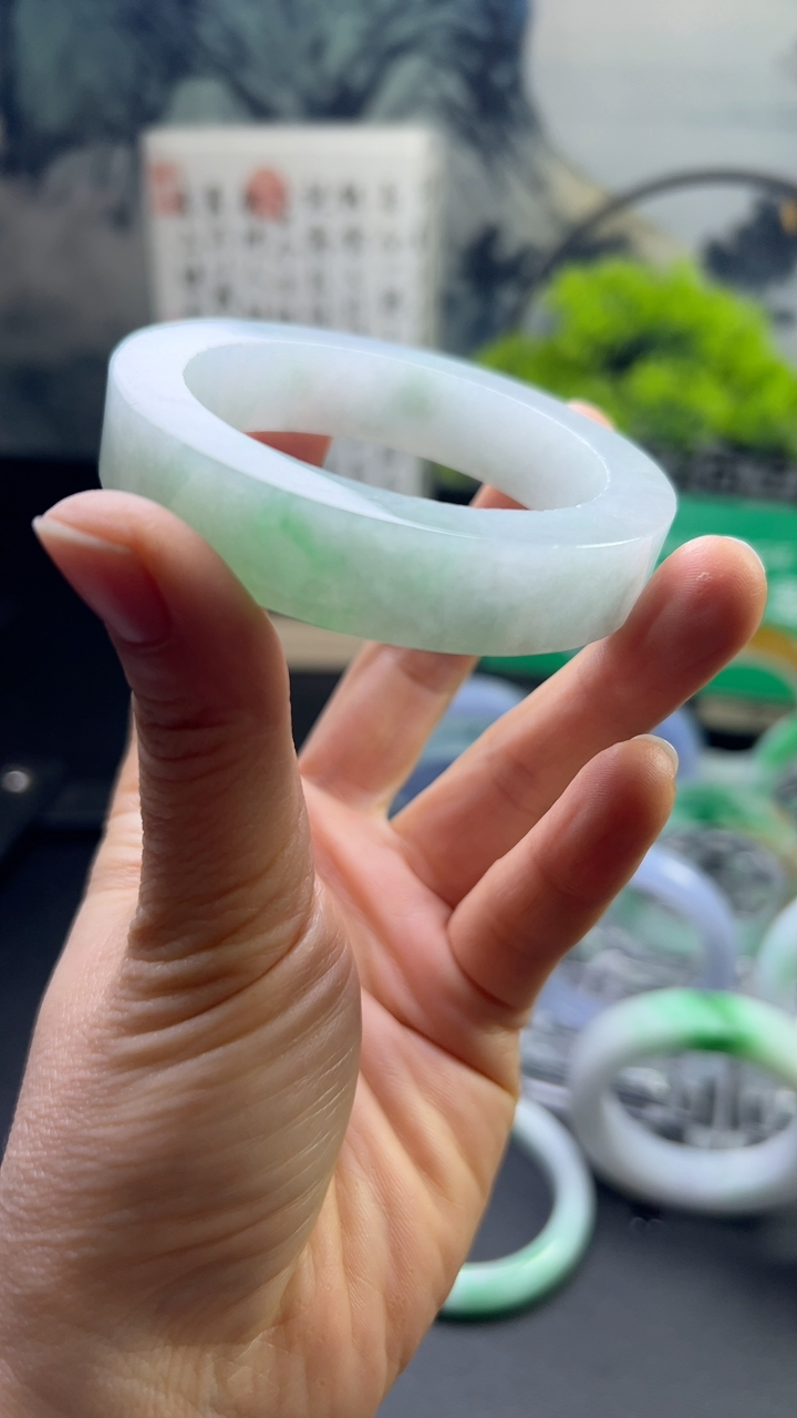nr实拍53.5*13.8*7.5平安镯 缅甸翡翠精美纯美水润宽边玉手镯 玉手环