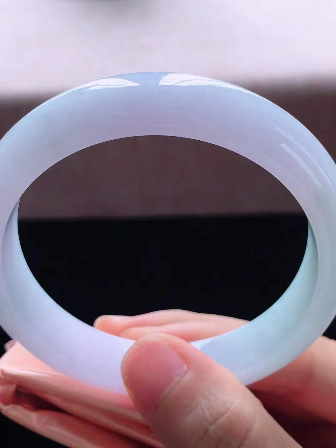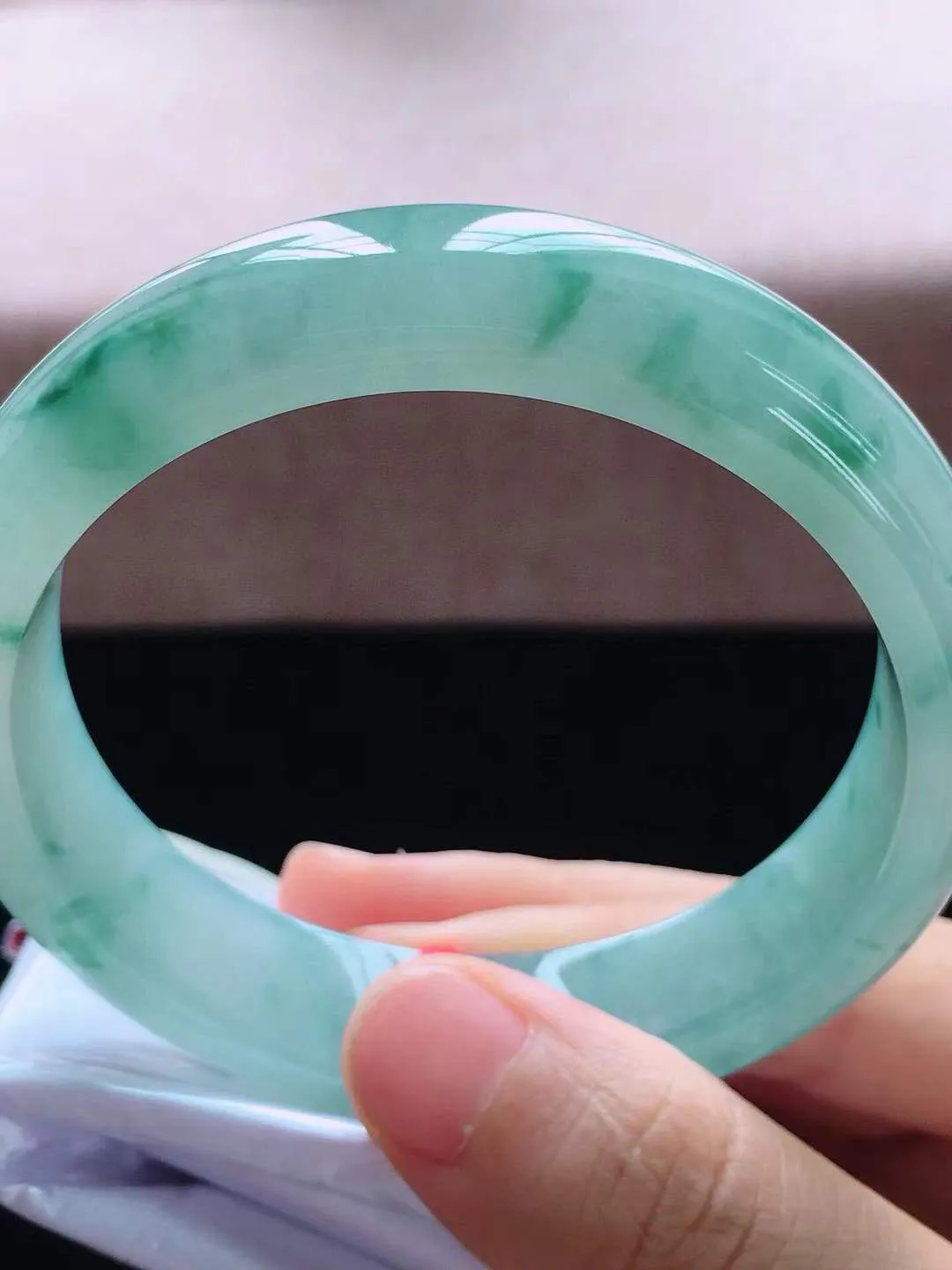 【翡翠名称】老种冰飘花59.6正圈口翡翠手镯 【翡翠尺寸】59.6*14.5*7.8mm适合59-6