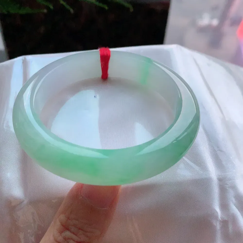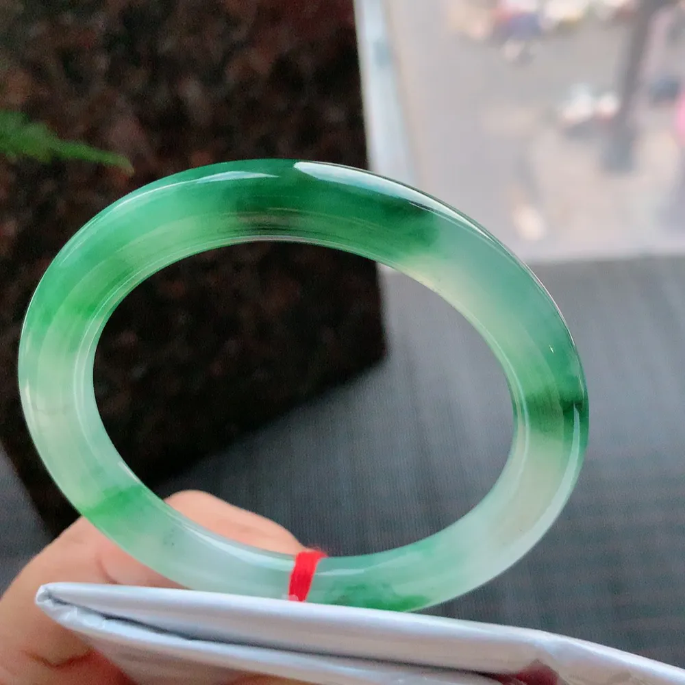 【翡翠名称】老种飘绿花54.8正圈口翡翠手镯 【翡翠尺寸】54.8*11.3*9.5mm适合53.8