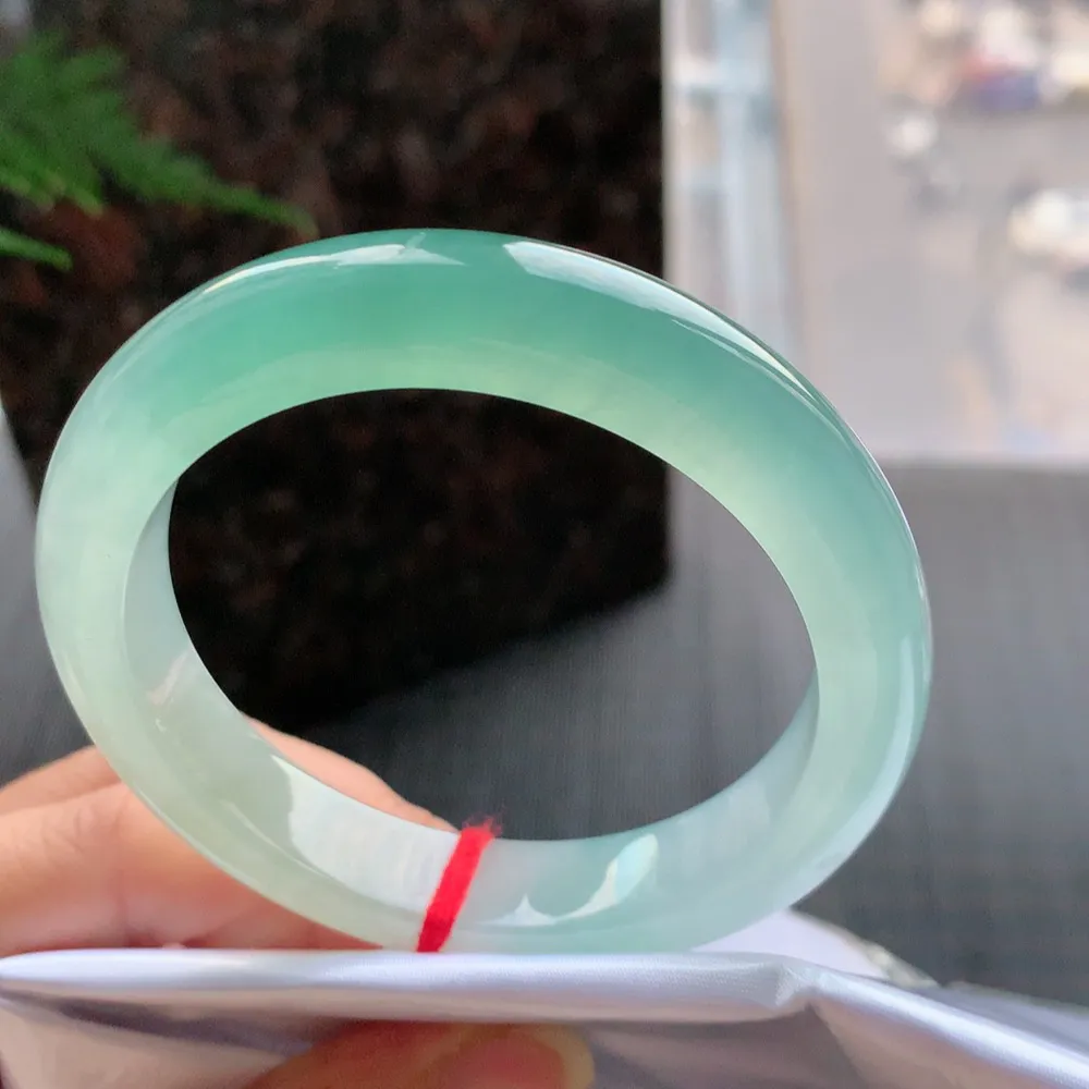 【翡翠名称】老种冰飘绿59.3正圈口翡翠手镯 【翡翠尺寸】59.3*15.8*7.5mm适合58-6