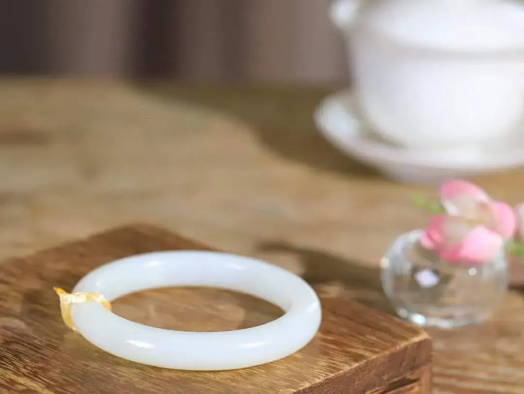 [温润如玉.手镯] 精品和田玉白玉手镯。玉质温润细腻 油性十足 手感舒适,高华雅逸,线条流畅,简约