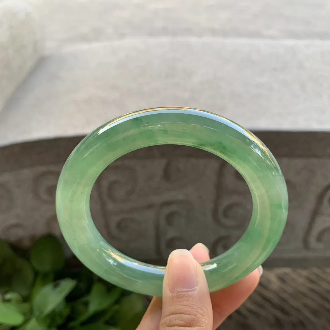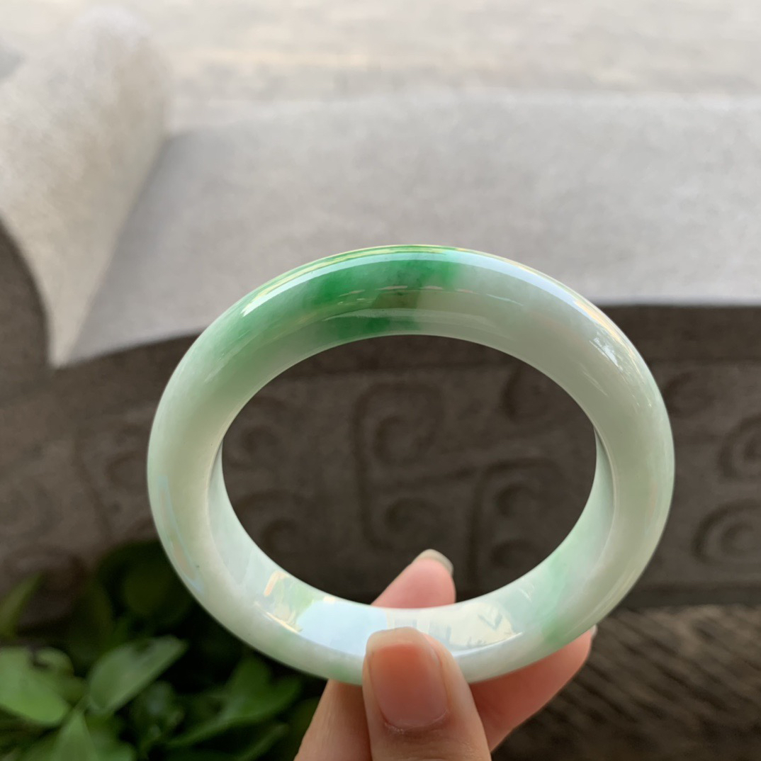 圆条冰糯阳绿 微纹 尺寸:52.1/10.1 色好