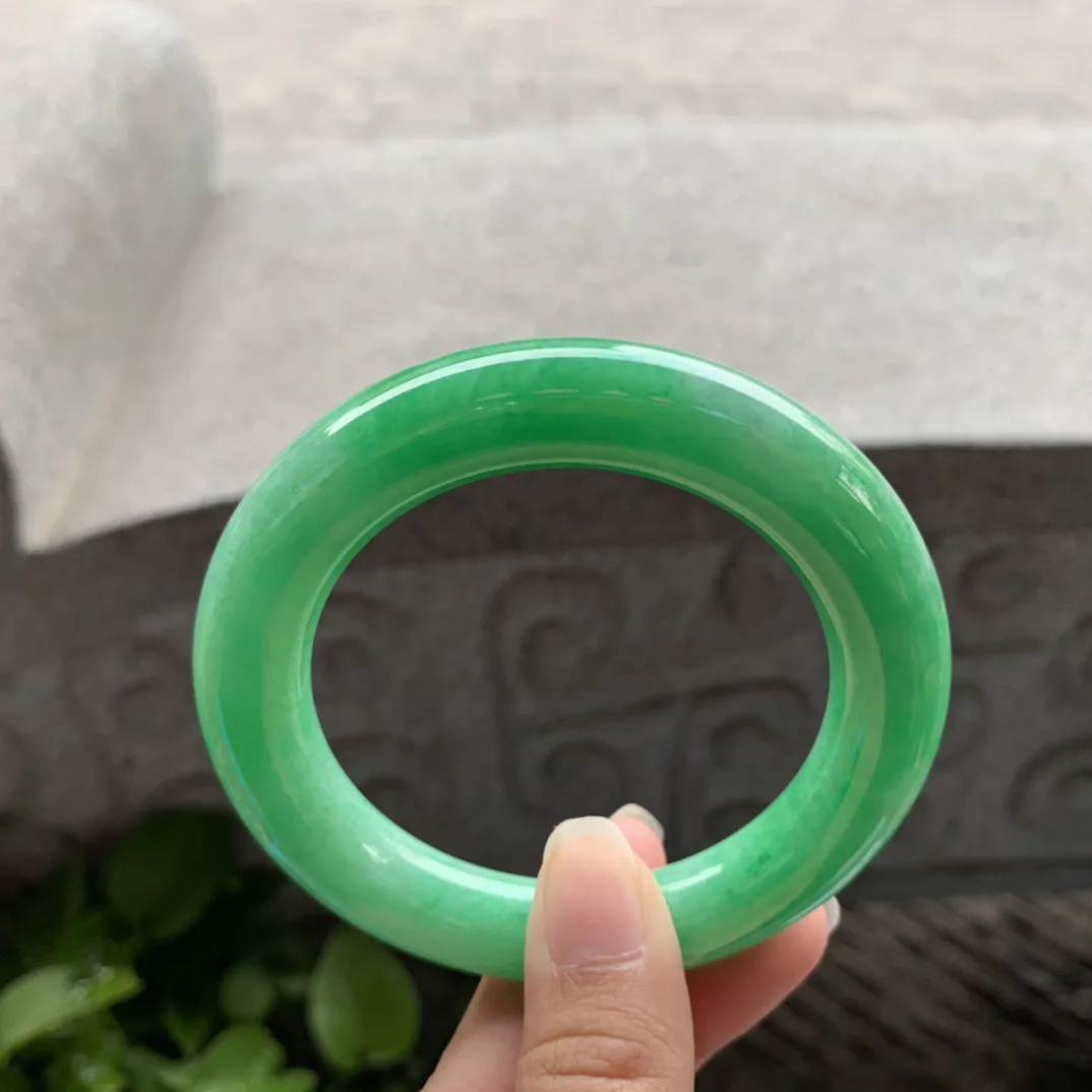 天然A货翡翠53/12.4/8.3老坑冰胶果冻特色飘花手镯宽边玉镯