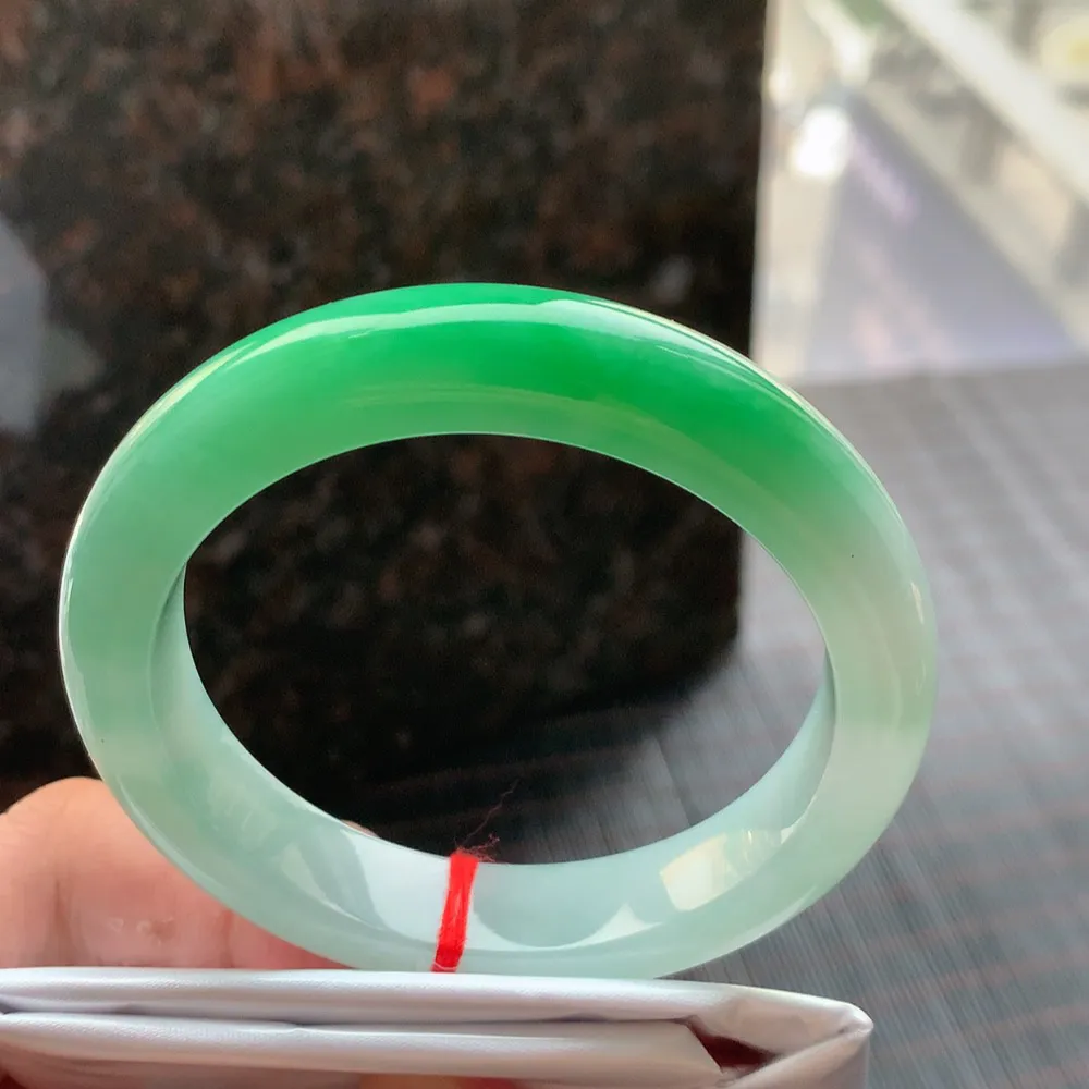 正圈冰糯翠绿 无瑕 尺寸:55.5/11.4/9.3 色好