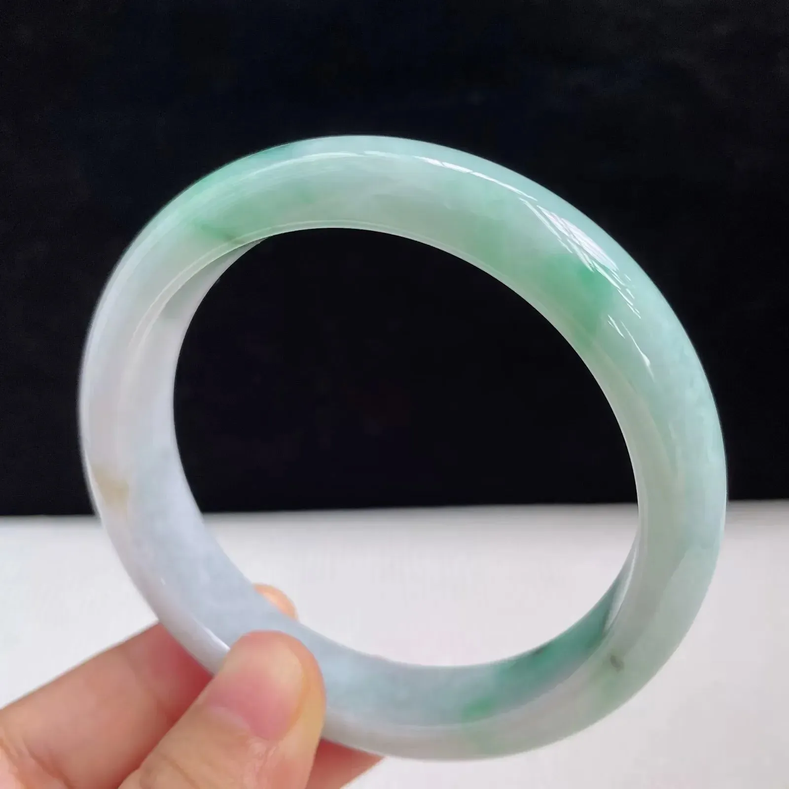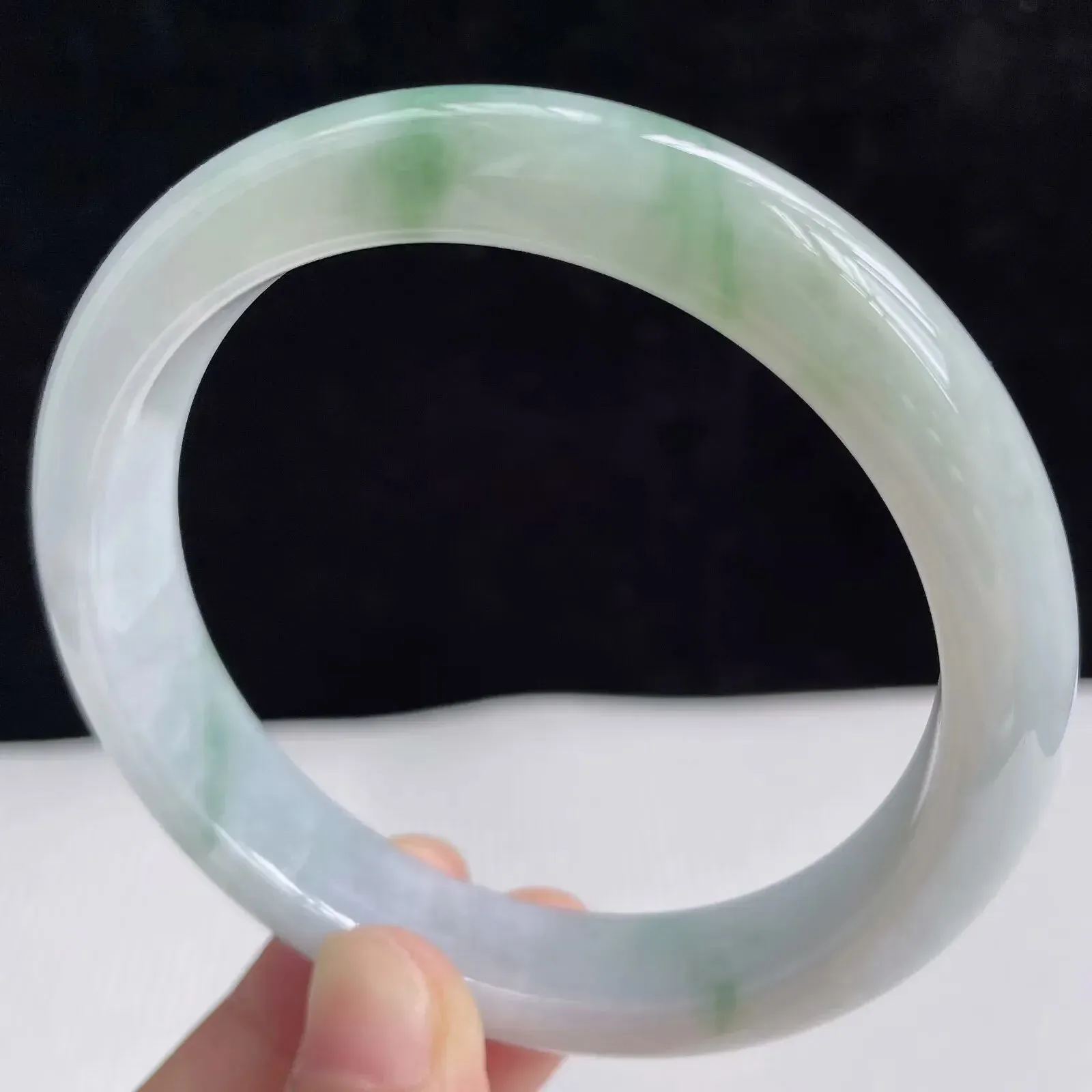nr实拍56*13*8缅甸翡翠a货玉手镯冰飘花正圈平安镯宽版玉手环
