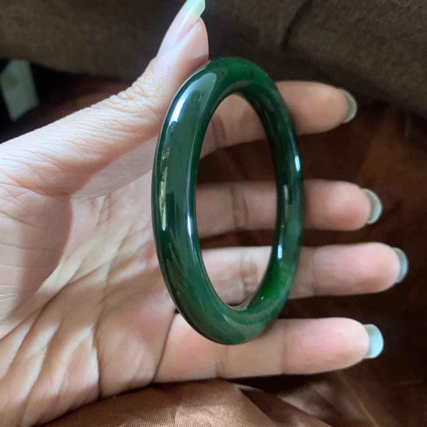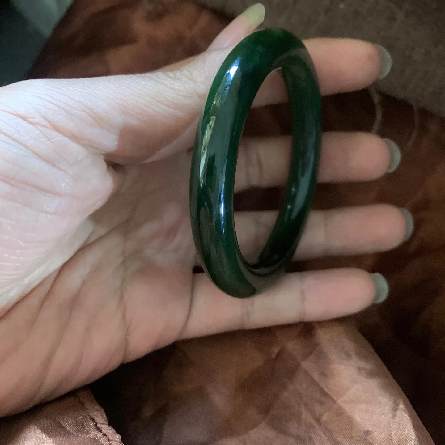 和田玉54圈口且末糖料雕花手镯,玉质细腻油润 底色纯净 无裂无杂 脂粉好,品质好