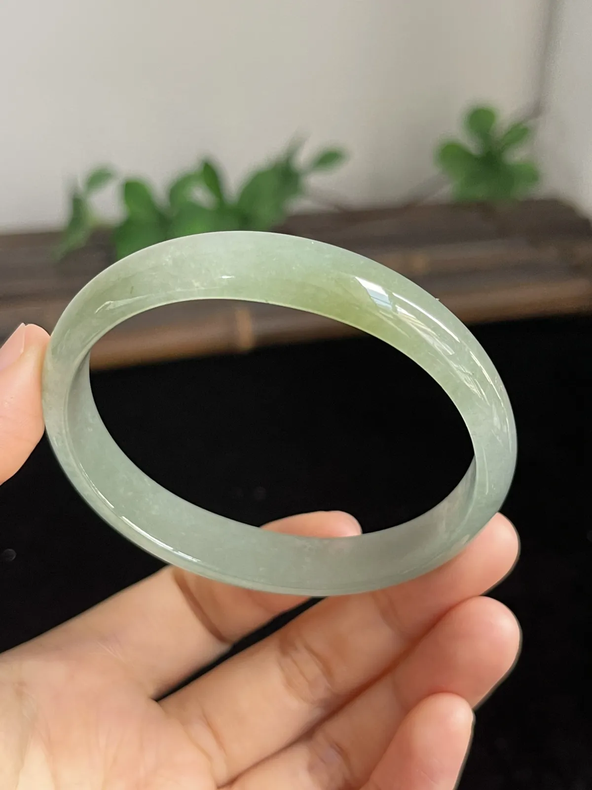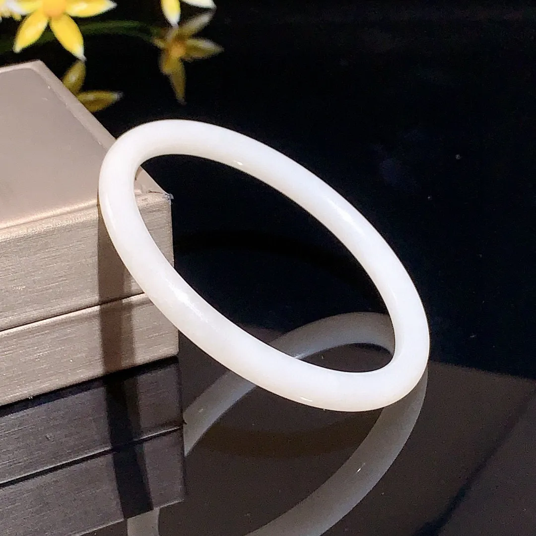和田玉57.5圈口且末糖宽版手镯,玉质细腻油润 底色纯净 脂粉好,品质好