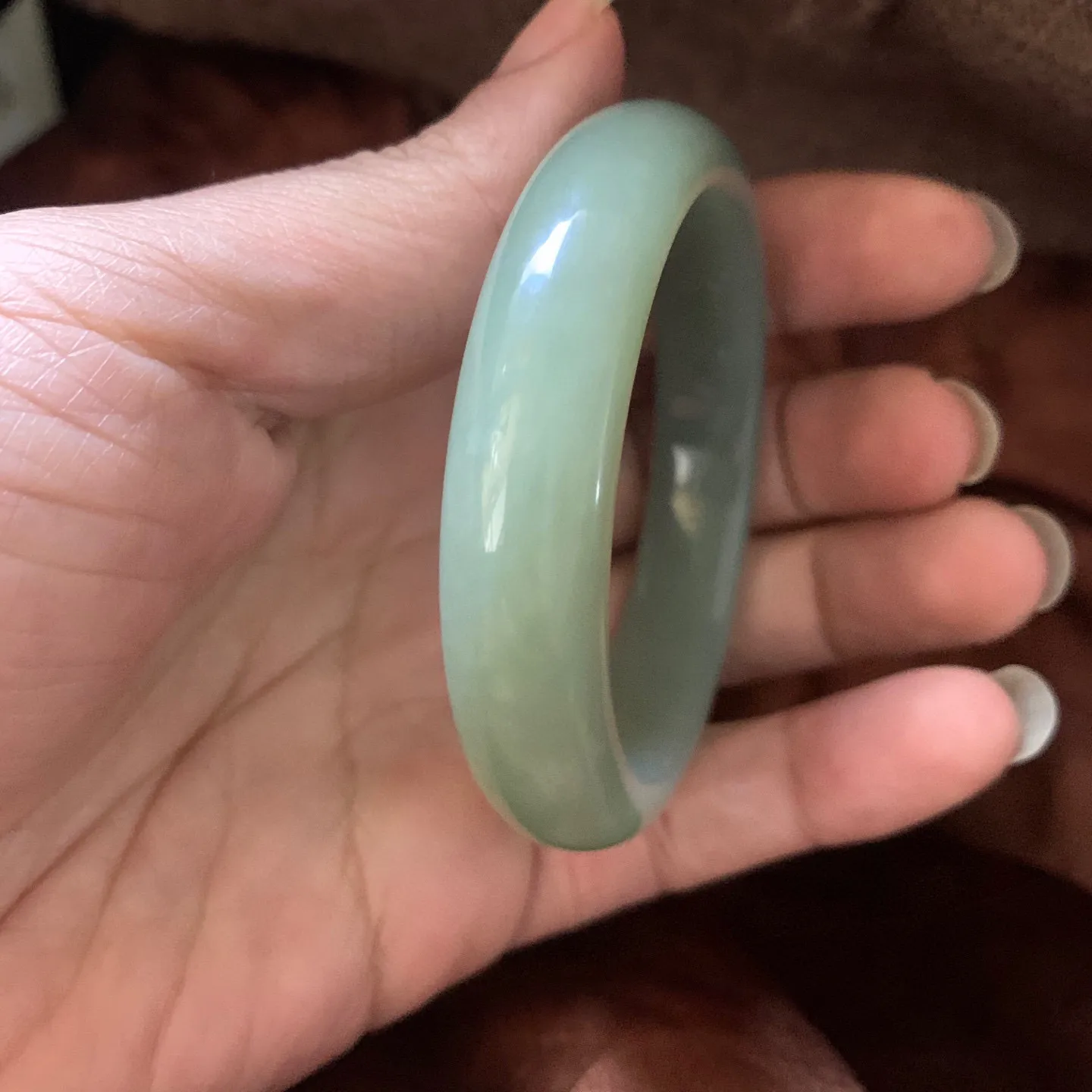 和田玉52圈口白玉加碧玉对镯手镯,玉质细腻油润 底色纯净 无裂无棉 脂粉好,品质好