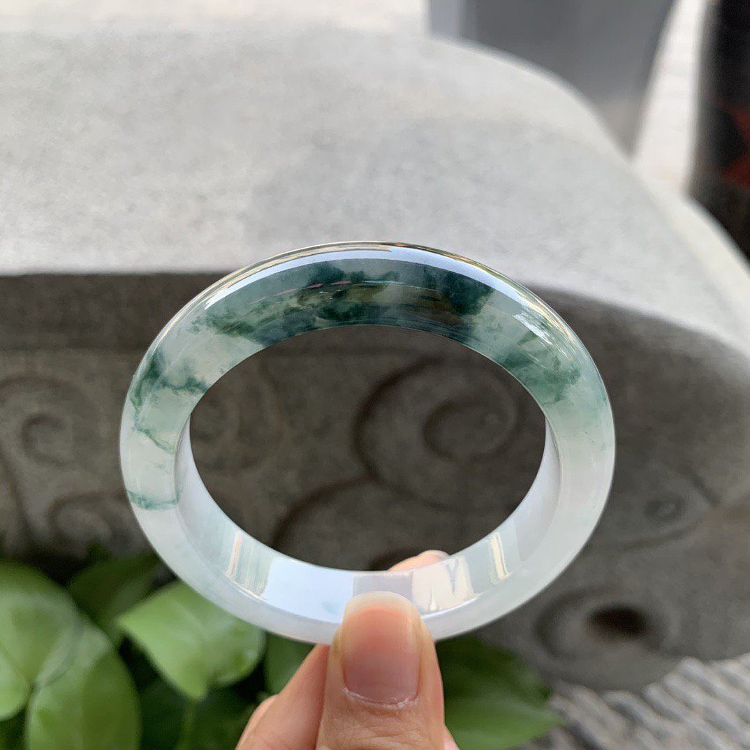 圈口57.8-13.5-8.8 【飘绿正圈手镯】正圈57 58可戴