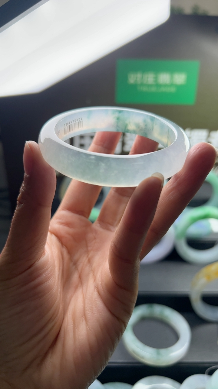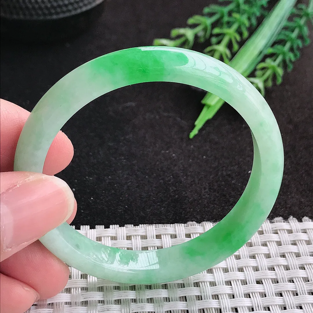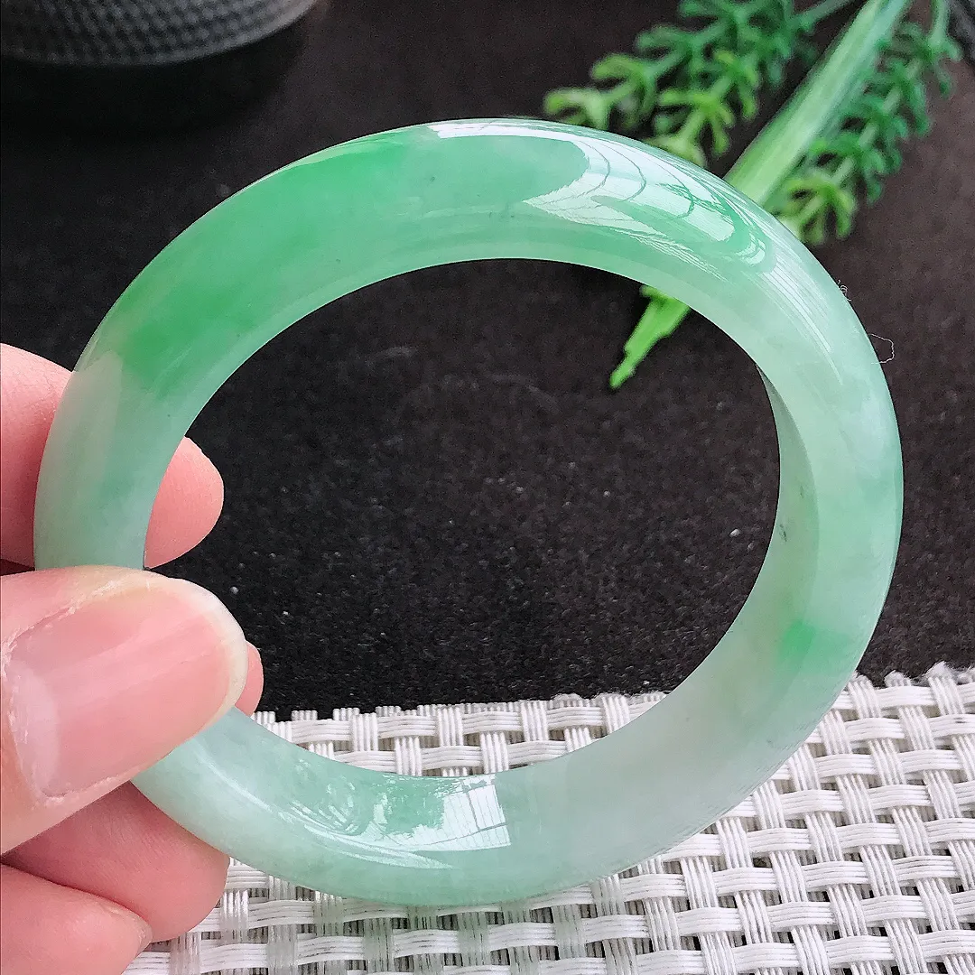 js自然光58.5*13*6平安镯 缅甸翡翠a货玉手镯冰种晴美宽边玉手环