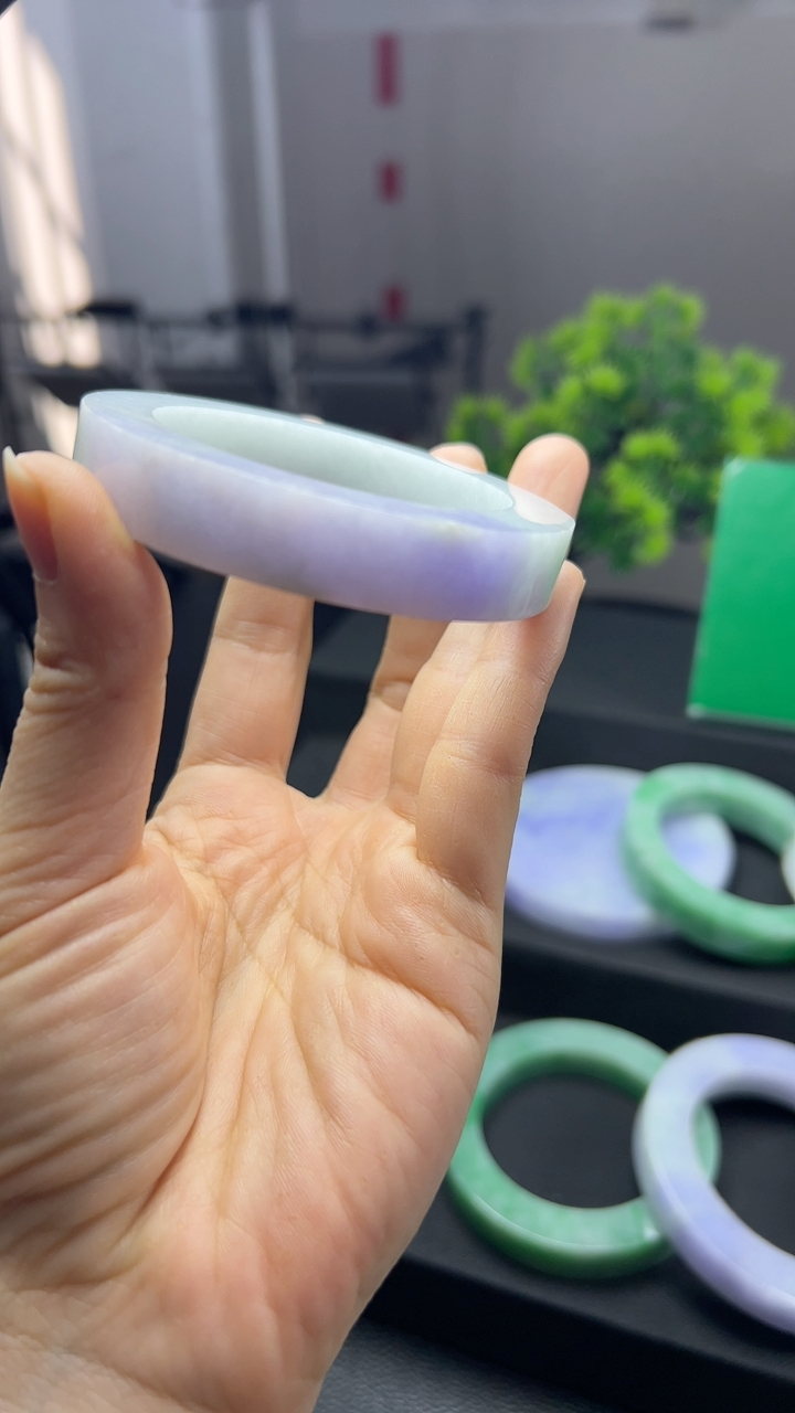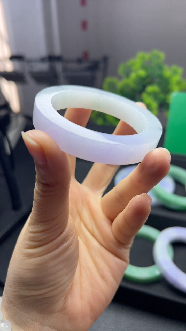 实拍天然翡翠62.5/12.5/7.8大圈口老坑冰润起胶淡绿色手镯翡翠玉镯手环