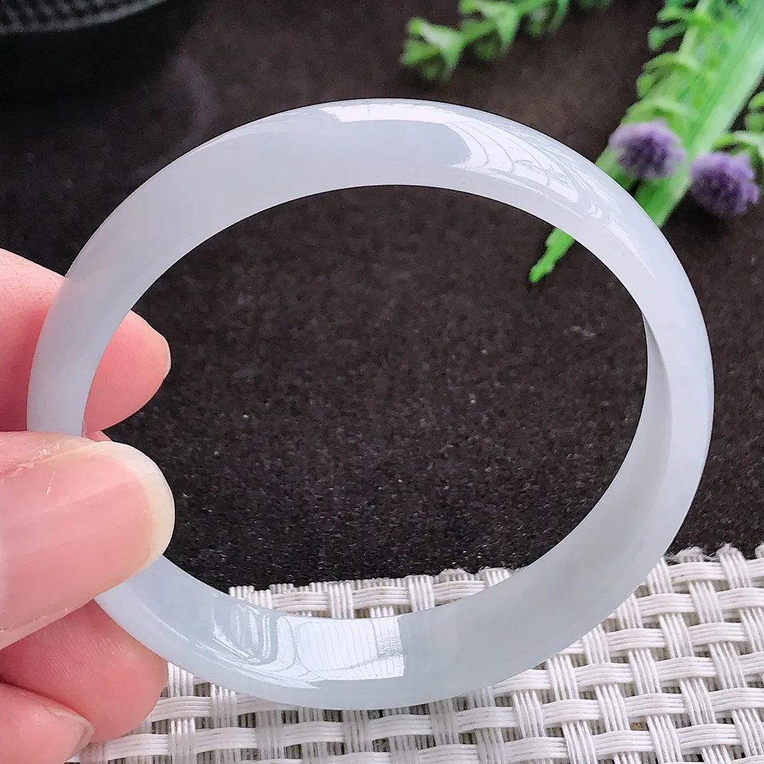 自然光51/11.3/4.8老坑秀气冰润白月光小圈口手镯宽边翡翠玉镯手环