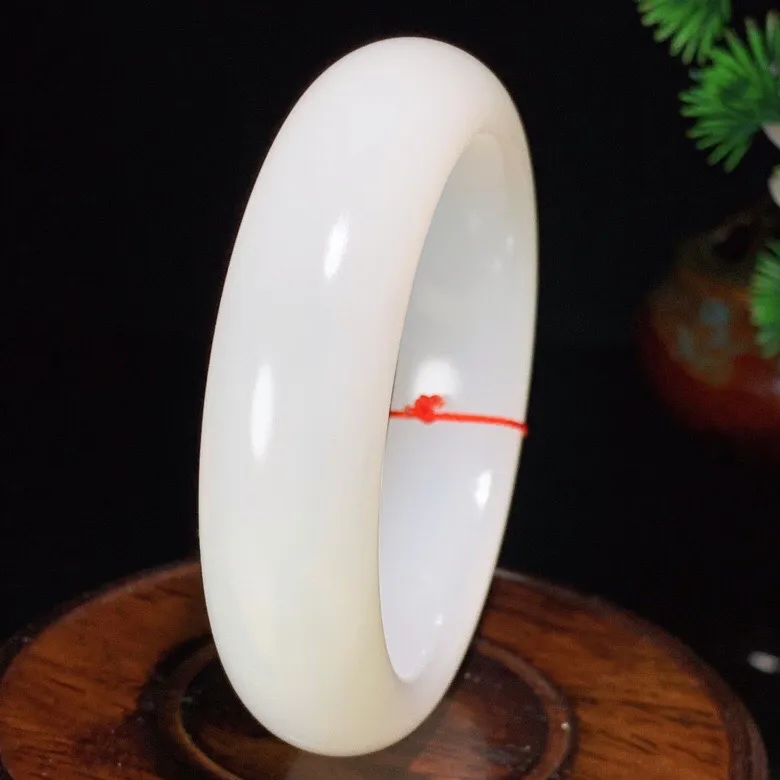 56圈口 新疆和田玉白玉羊脂白玉手镯 羊脂白玉宽版手镯。圈口56条宽17厚10玉质细腻油润 无裂