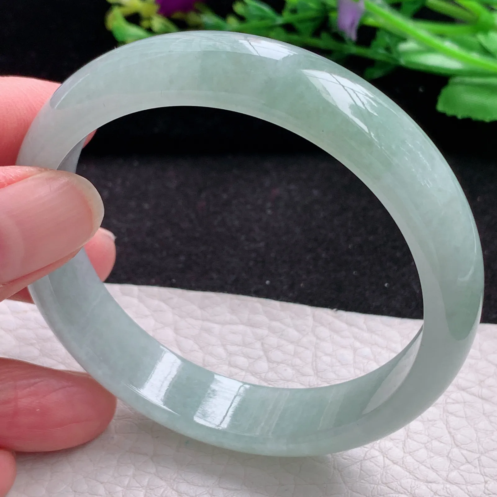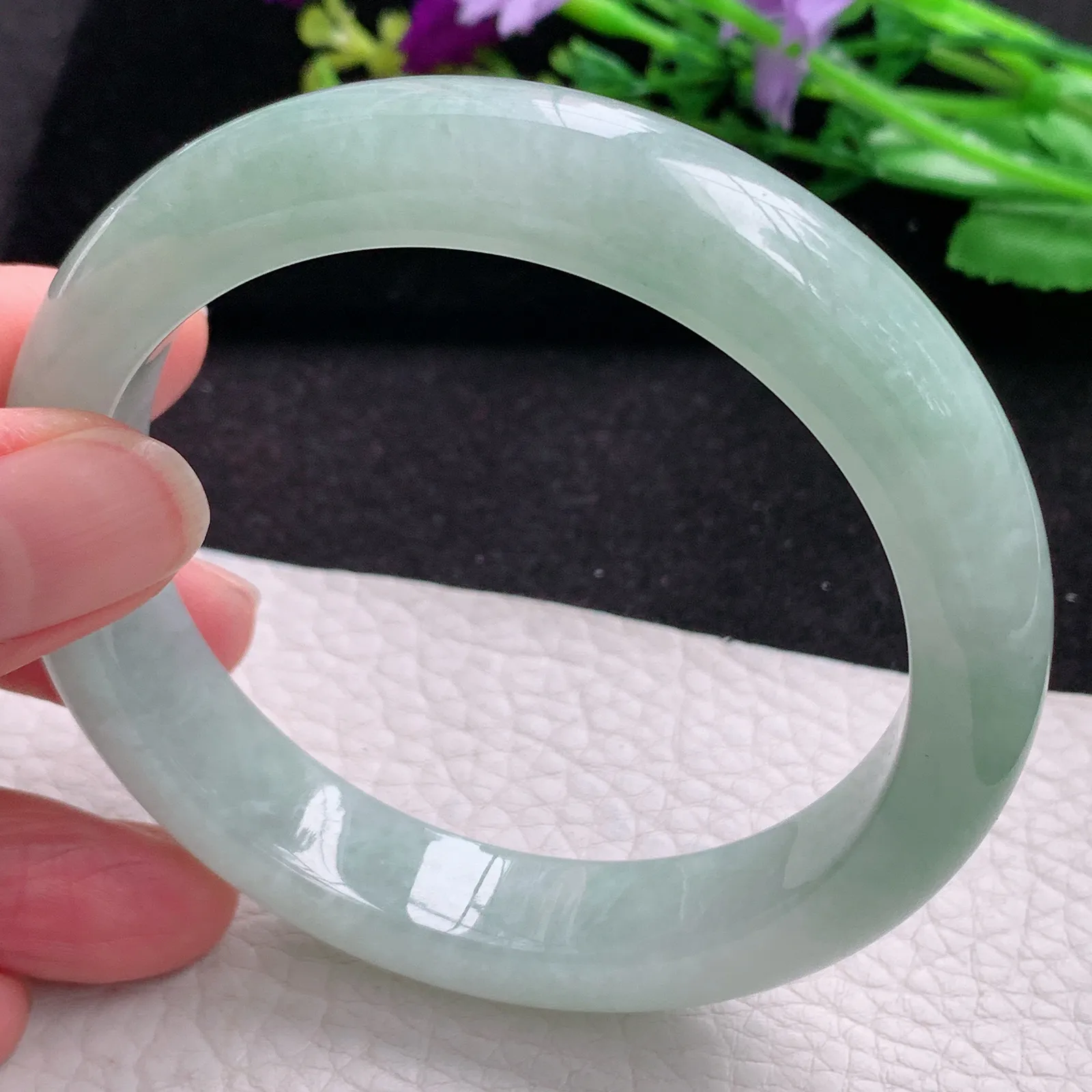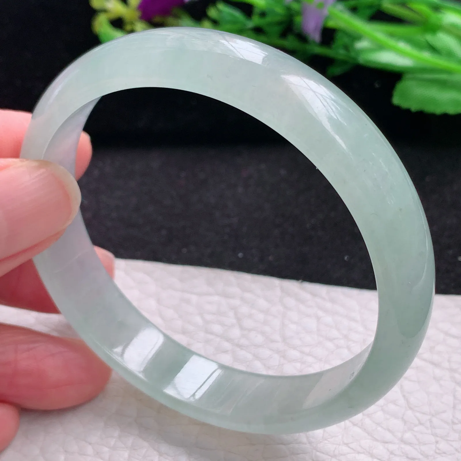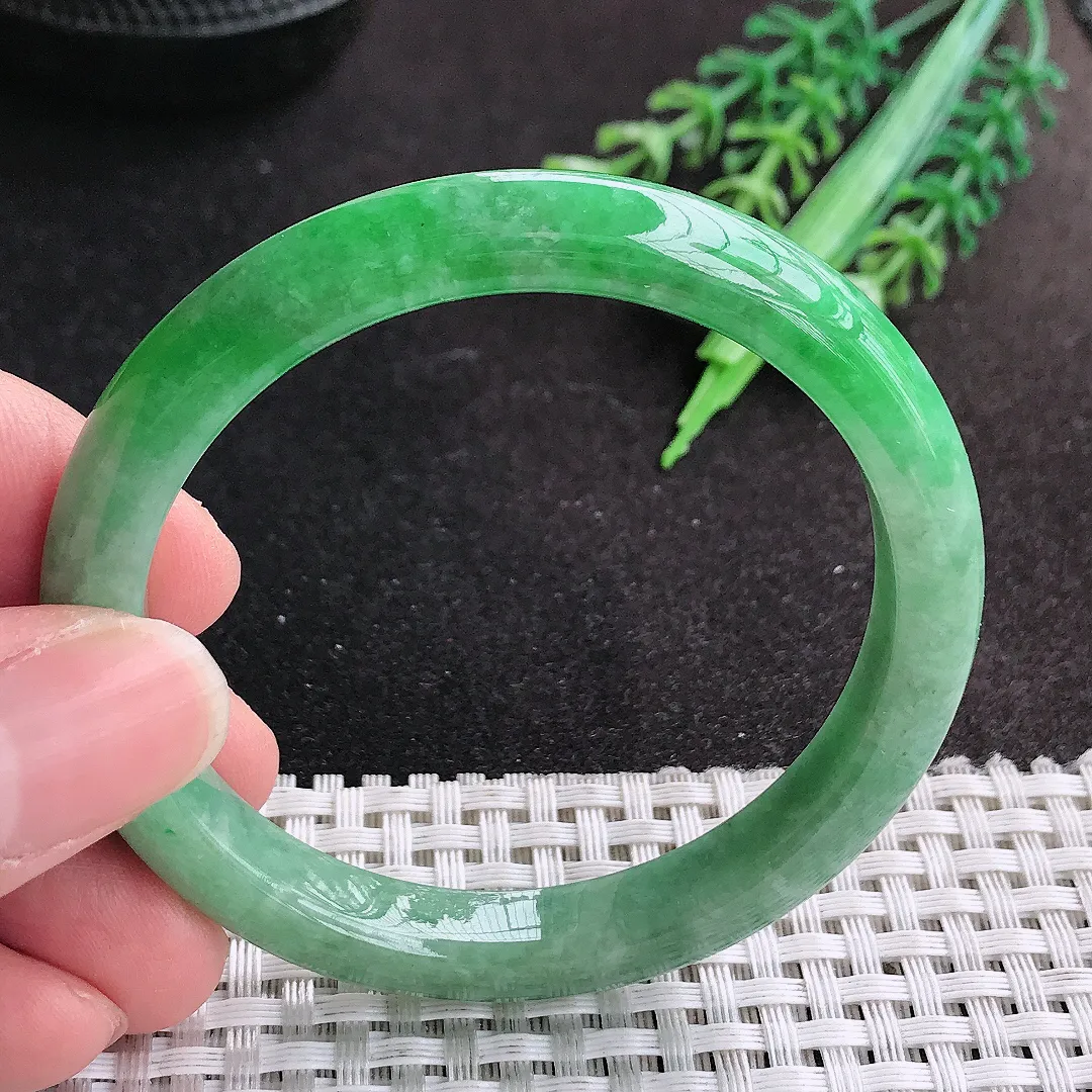 z大圈口60*12.8*8.8平安镯 缅甸翡翠a货玉手镯冰晴胶感宽边玉手环