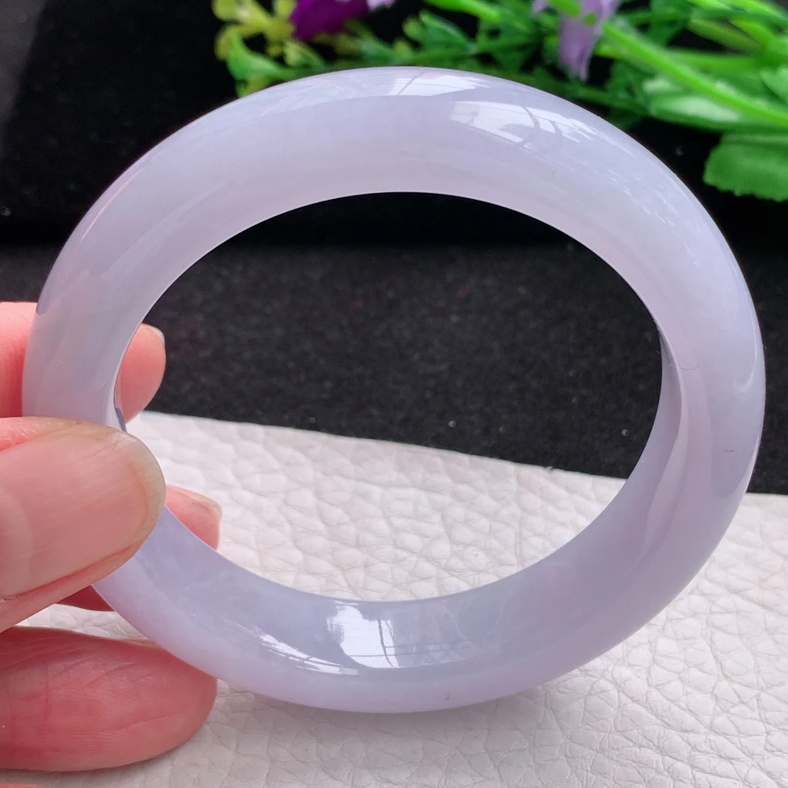 js自然光53.8*12.6*8.8平安镯 缅甸翡翠a货玉手镯紫罗兰高雅宽边玉手环