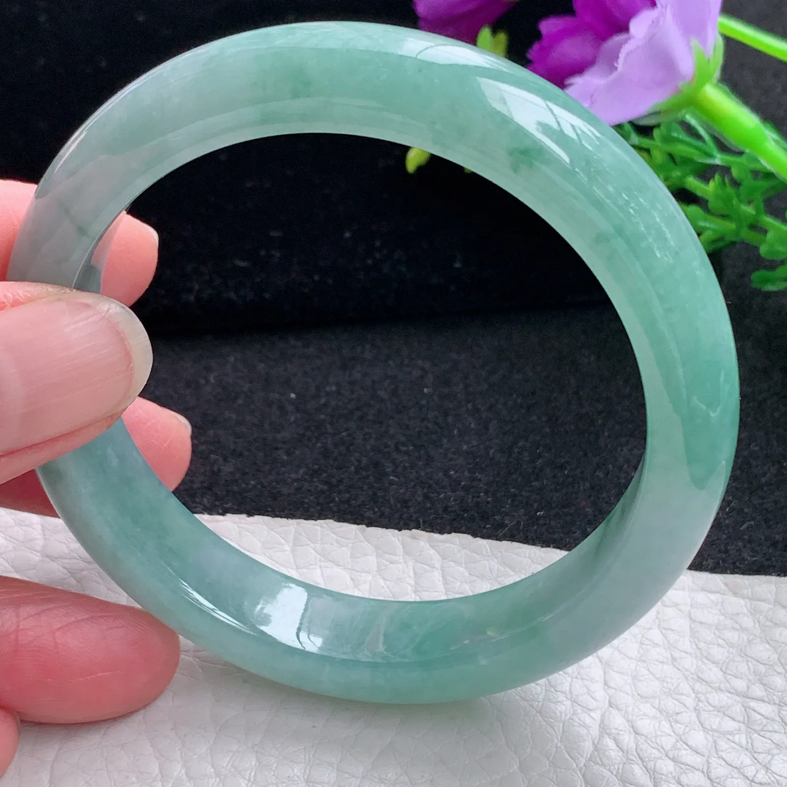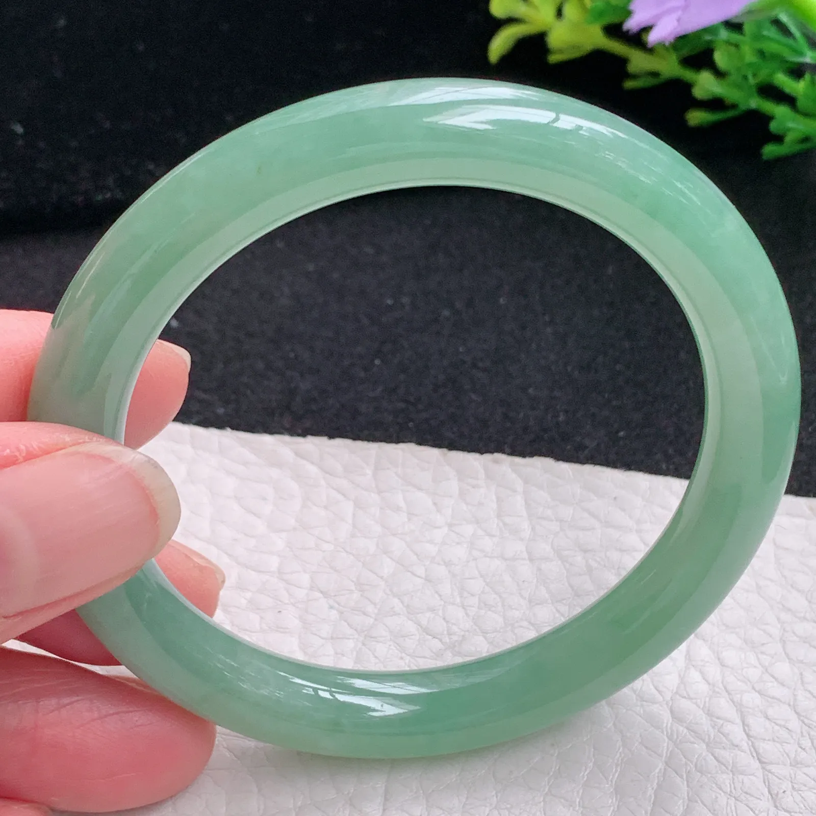 圆条冰糯阳绿 无瑕 尺寸:53.5/8.7 色好🥰🥰
