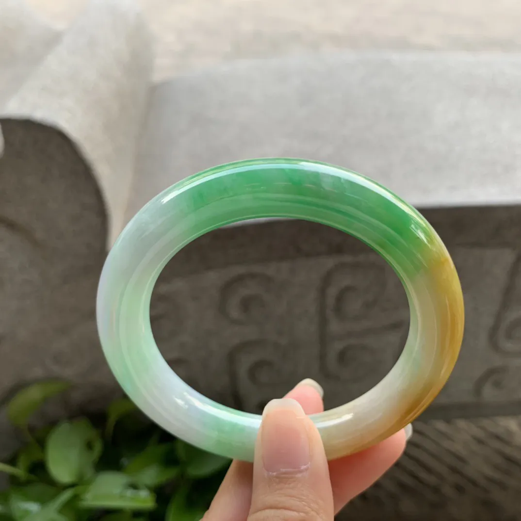 圈口 56.3-10.8【黄加绿圆条手镯】圆条56 57可戴