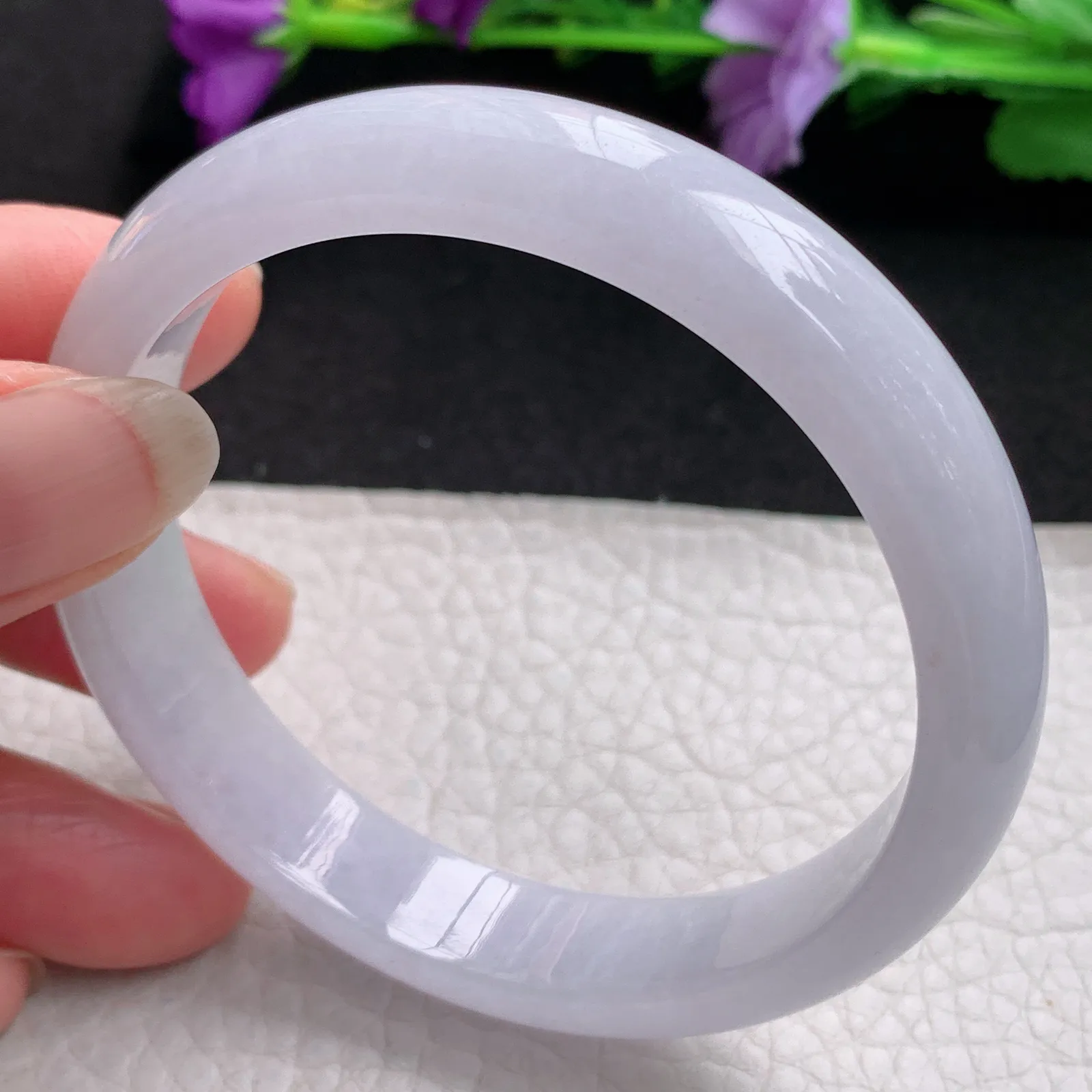nr实拍57.5*12*7平安镯 天然缅甸翡翠淡紫宽边玉手镯 玉手环
