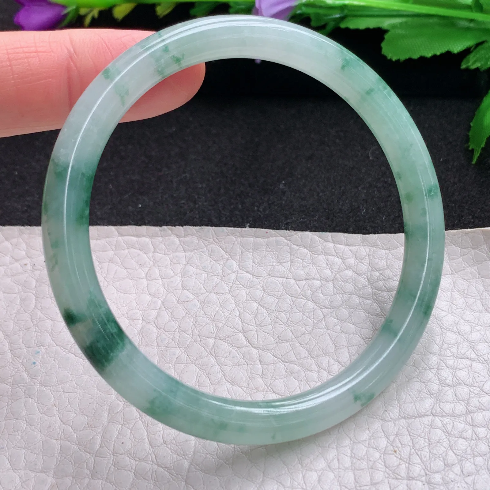 js实拍58.5*6.6*7.2美人镯 天然缅甸翡翠冰飘花圆条玉手镯 玉手环
