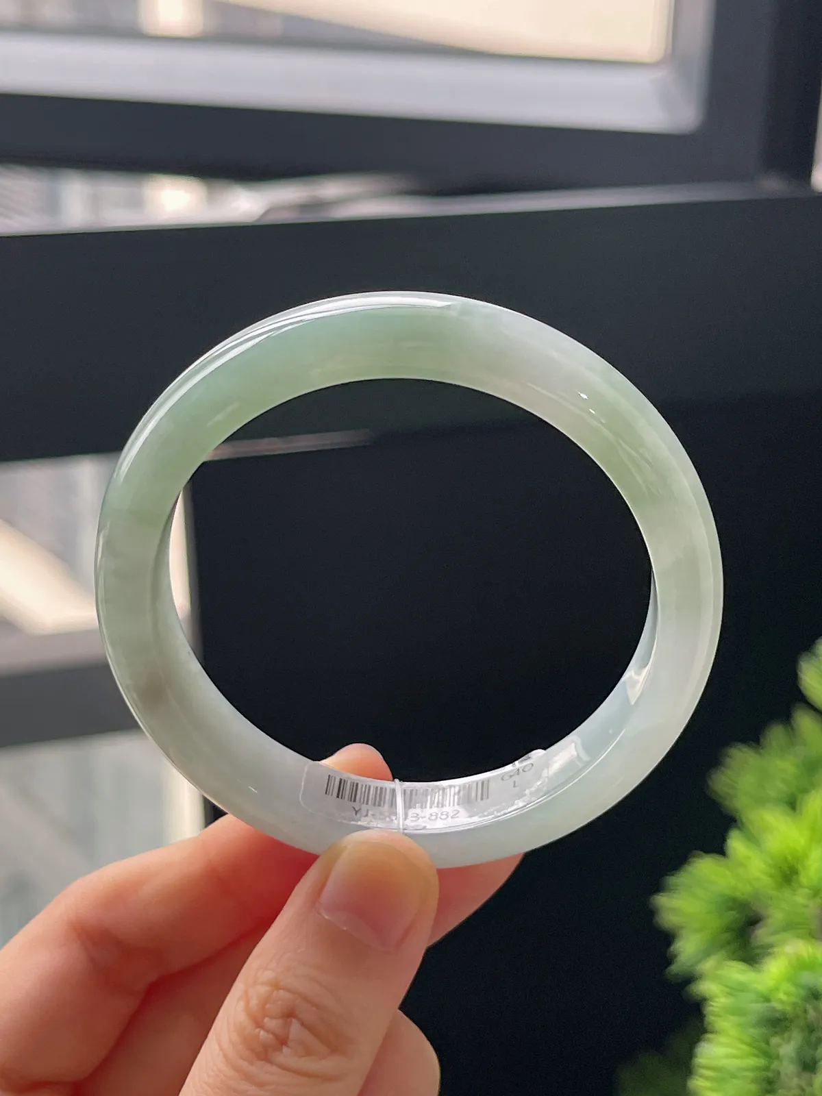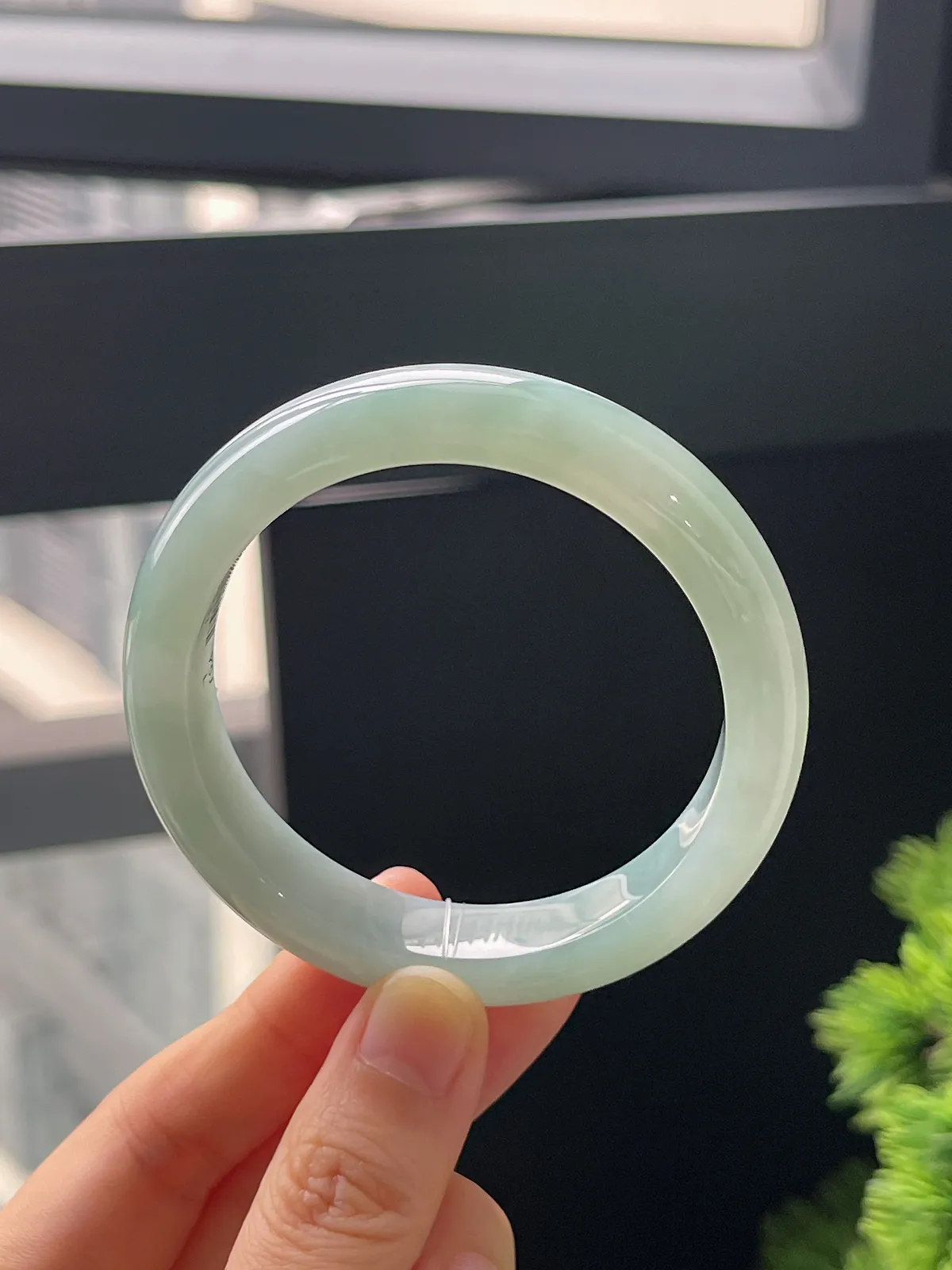 正圈57.3圈口,翡翠冰糯种淡绿色手镯