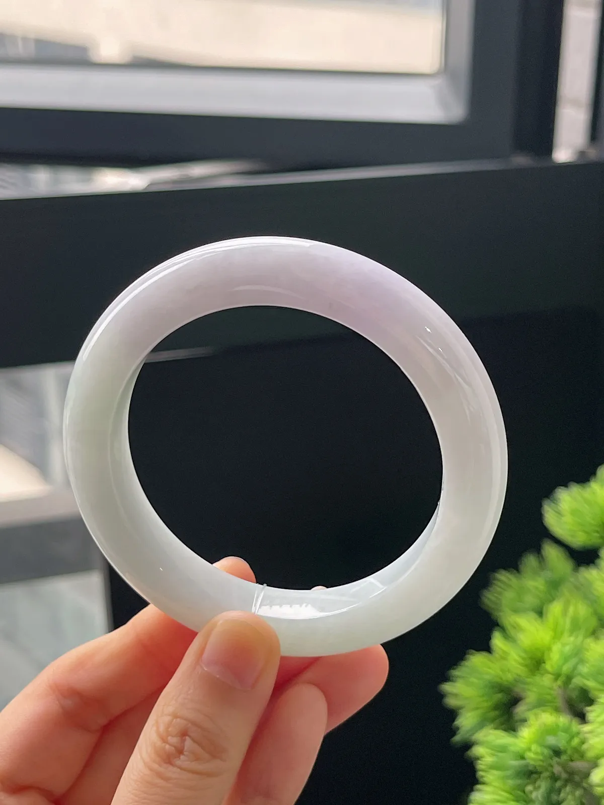 53.7mm自然光拍摄天然翡翠淡紫罗兰好种水正圈手镯 51.09克