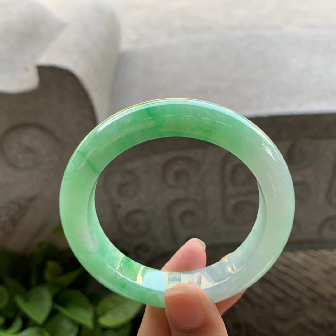 圈口54.8-12.4-8.5 【芙蓉绿正圈手镯】正圈54 55可戴