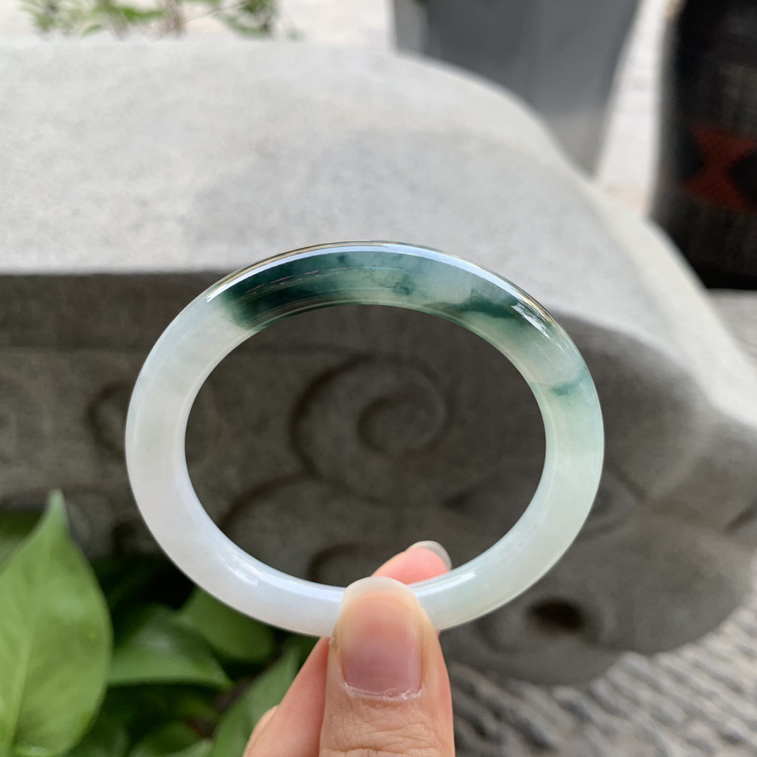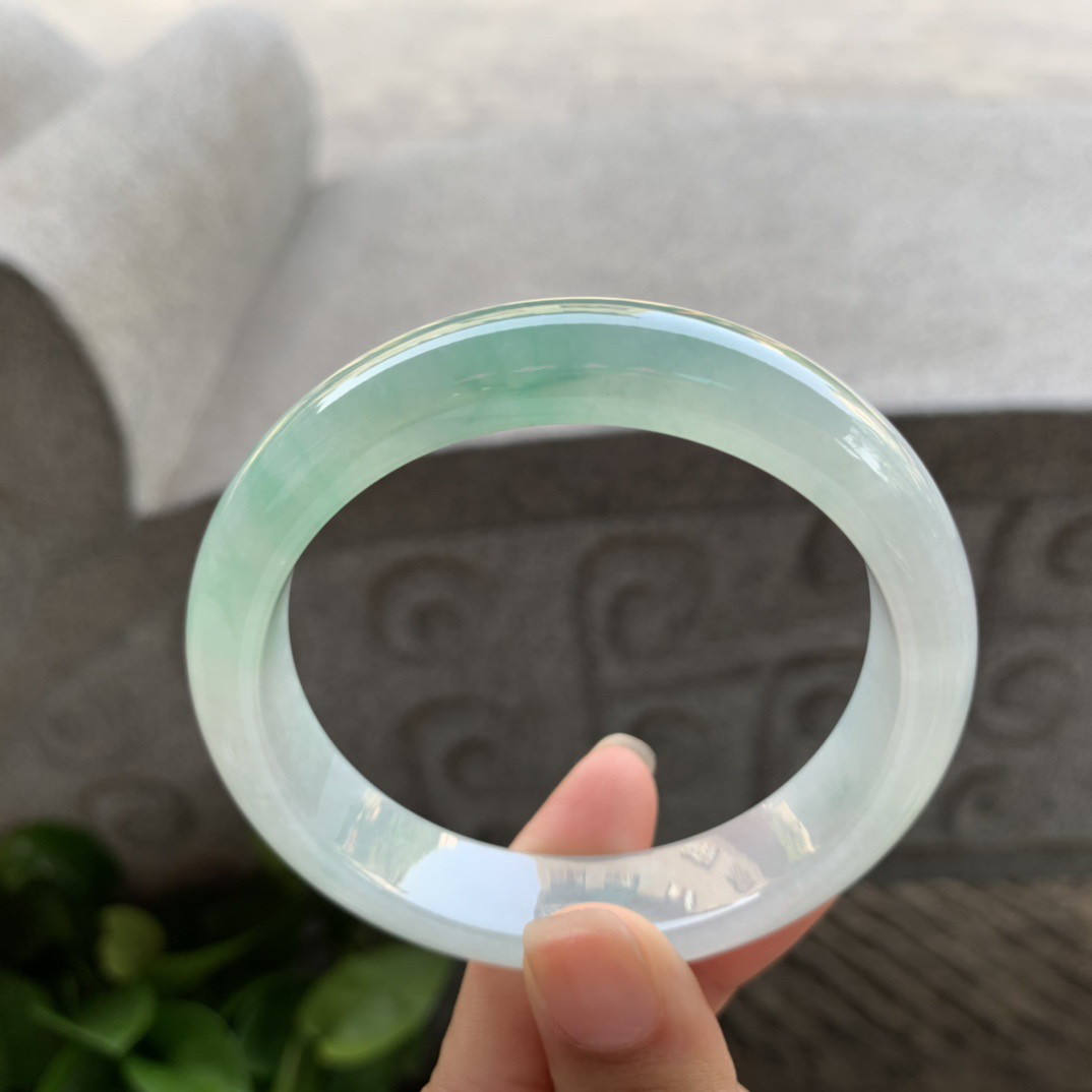z实拍58*12.5*10.3平安镯 天然缅甸翡翠A货手镯飘绿厚装正圈玉手环