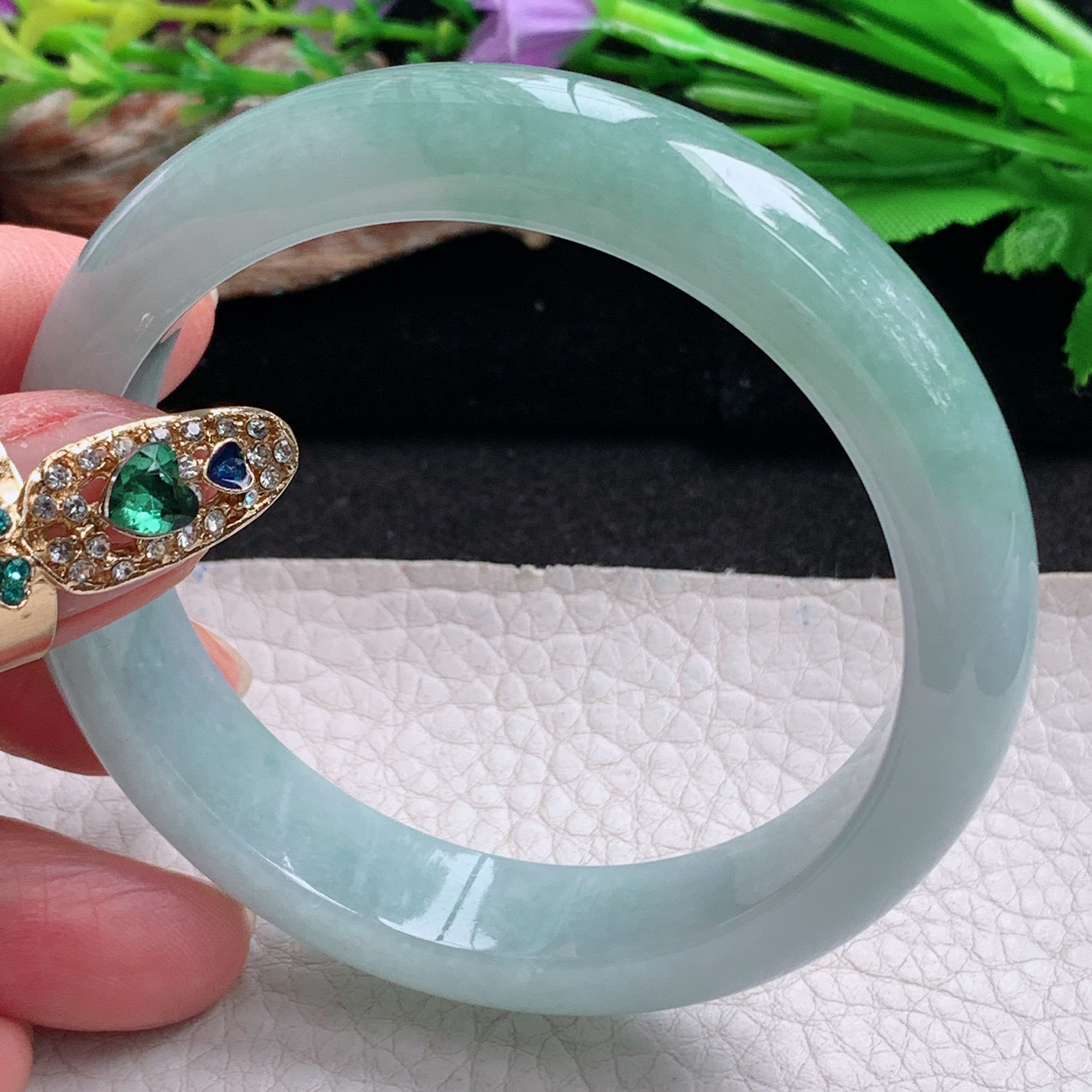ax实拍54*12.3*8.3平安镯 天然翡翠a货手镯冰飘花厚装大气正圈玉镯子