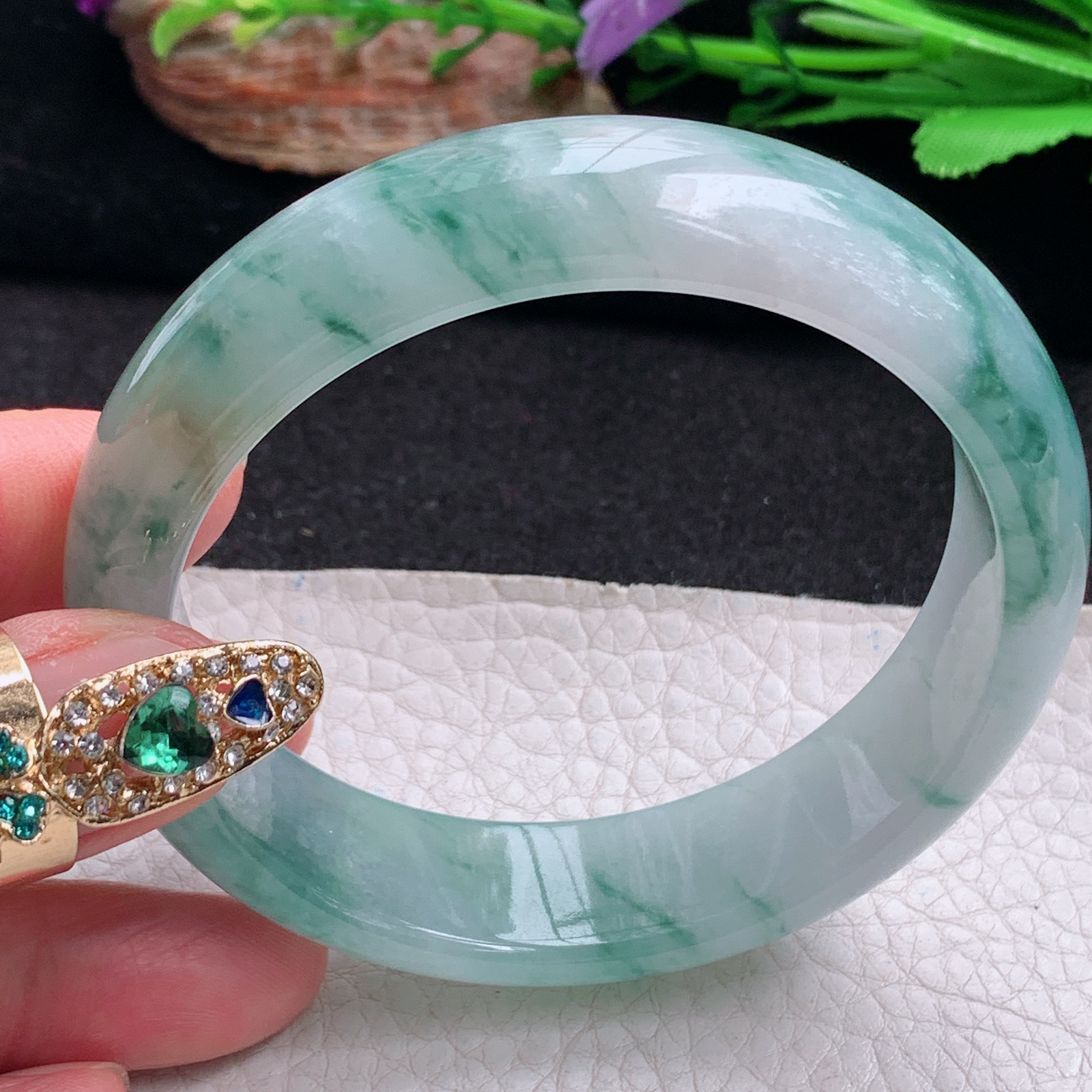 ax实拍56*13.8*8.6平安镯 天然翡翠a货手镯冰飘花厚装大气正圈玉镯子