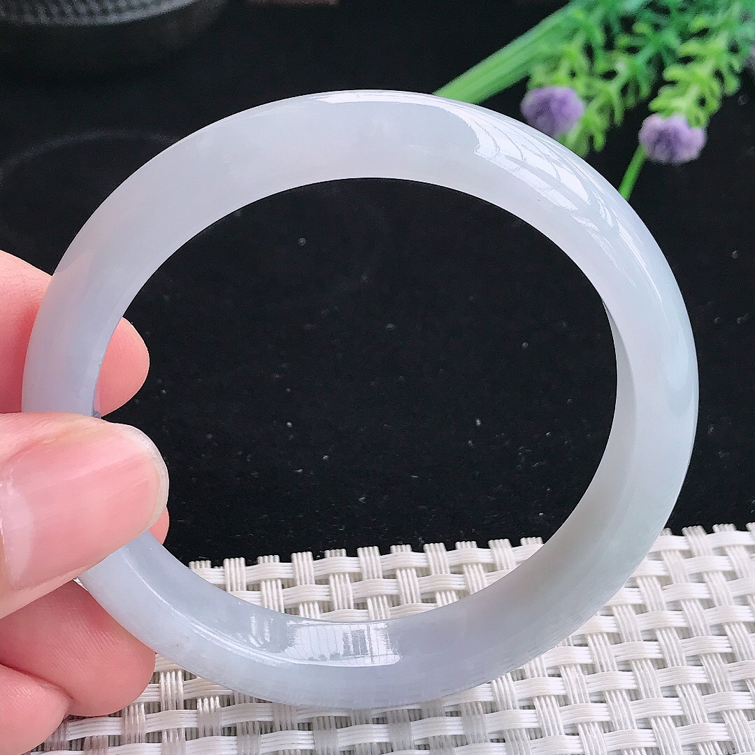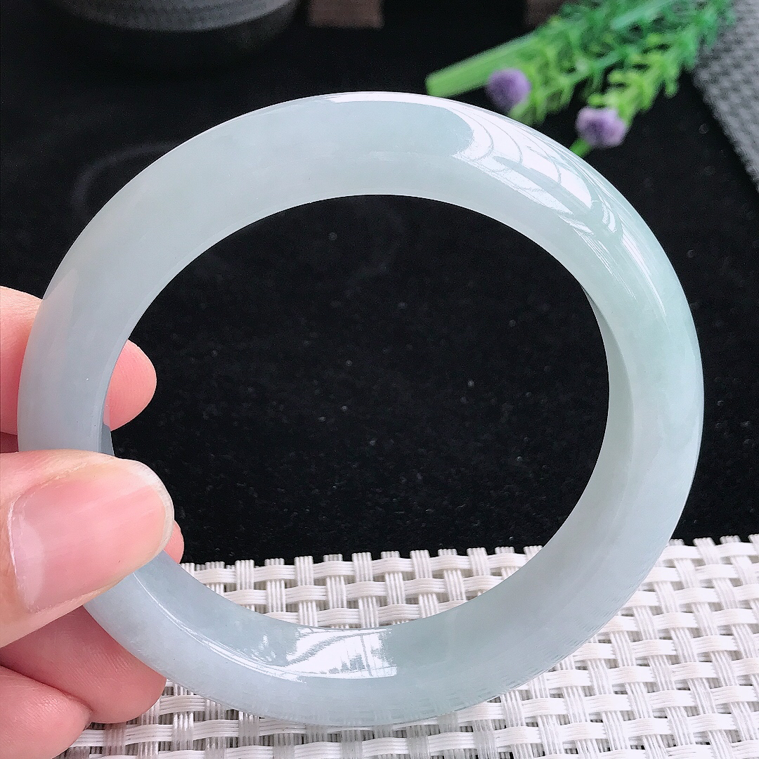 实拍A货翡翠59/12.5/9.5老坑冰胶水灵冰晴天空蓝手镯宽边玉镯平安镯美人镯
