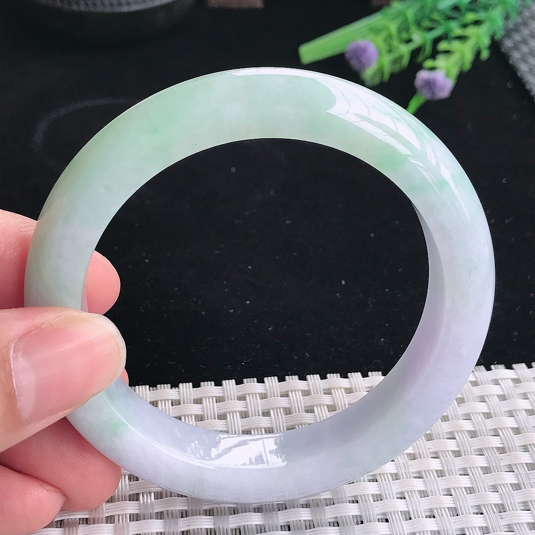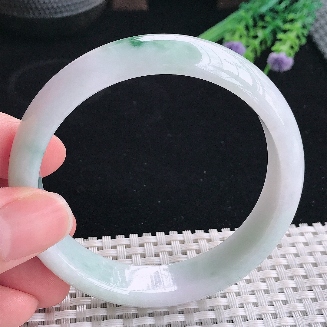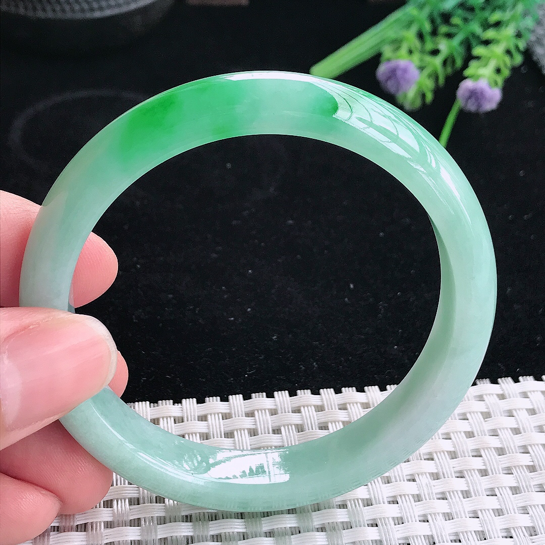 实拍A货翡翠59/15/7.6老坑精美温润飘花手镯宽边玉镯平安镯美人镯