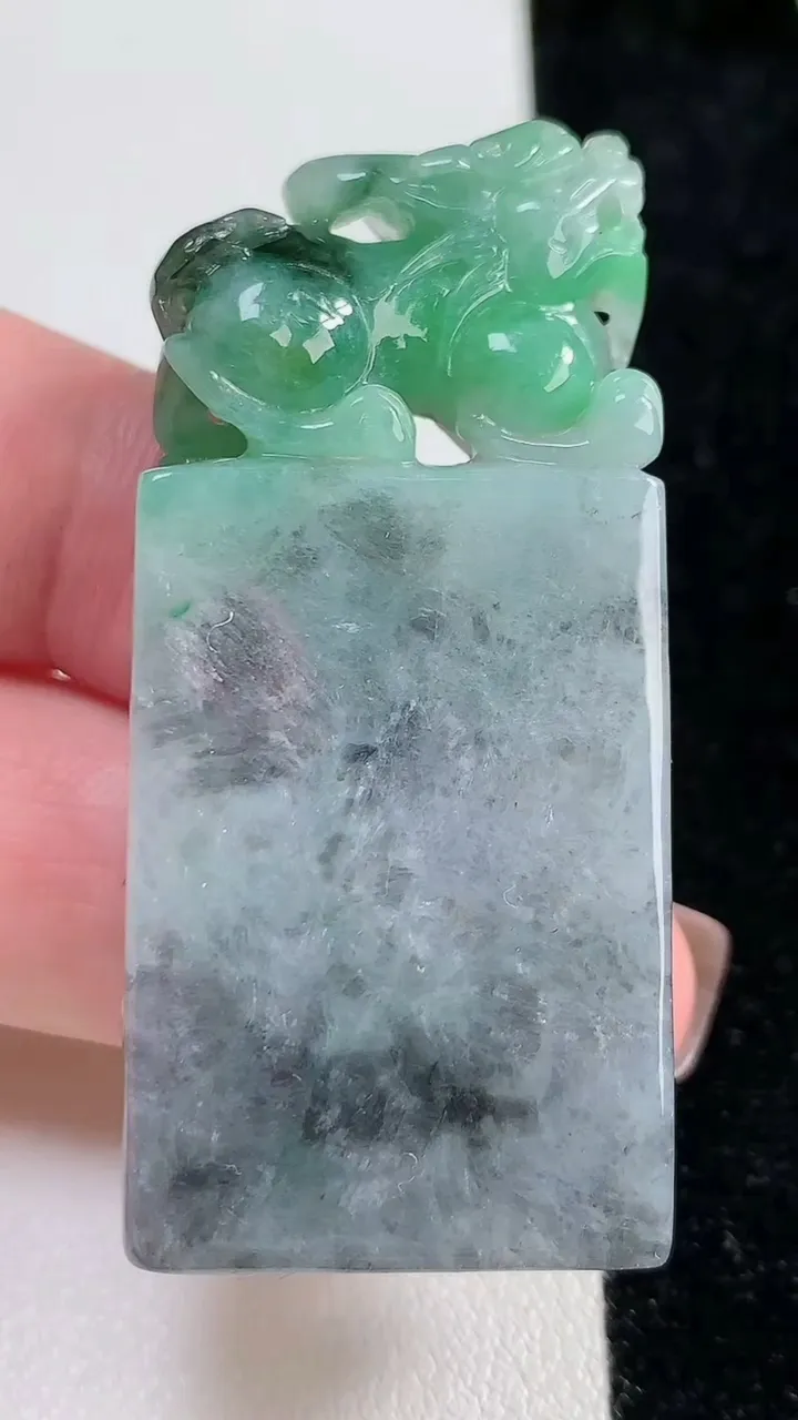 天然A货翡翠貔貅印章,尺寸53.5-25-12,重:41.61g 11月13日