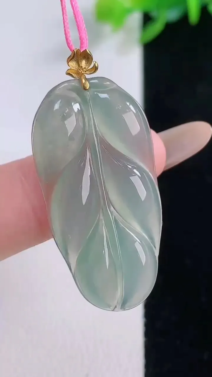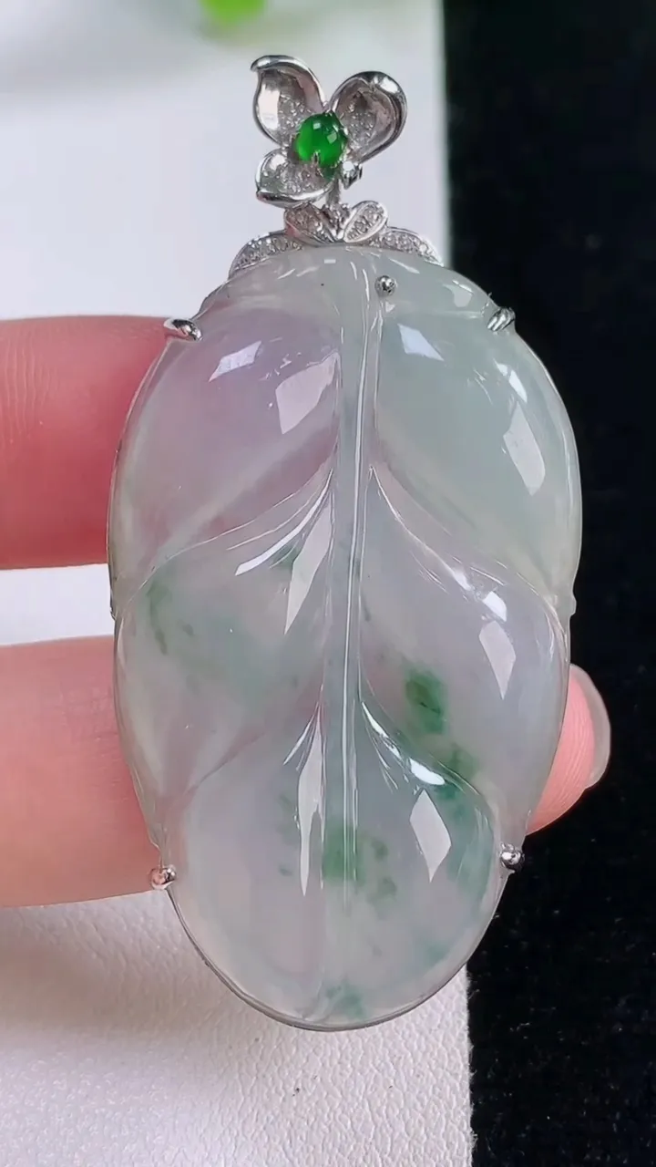 天然A货翡翠金枝玉叶 叶子吊坠,尺寸34.5-17.6-3.6,重量:4.20g 12月1日