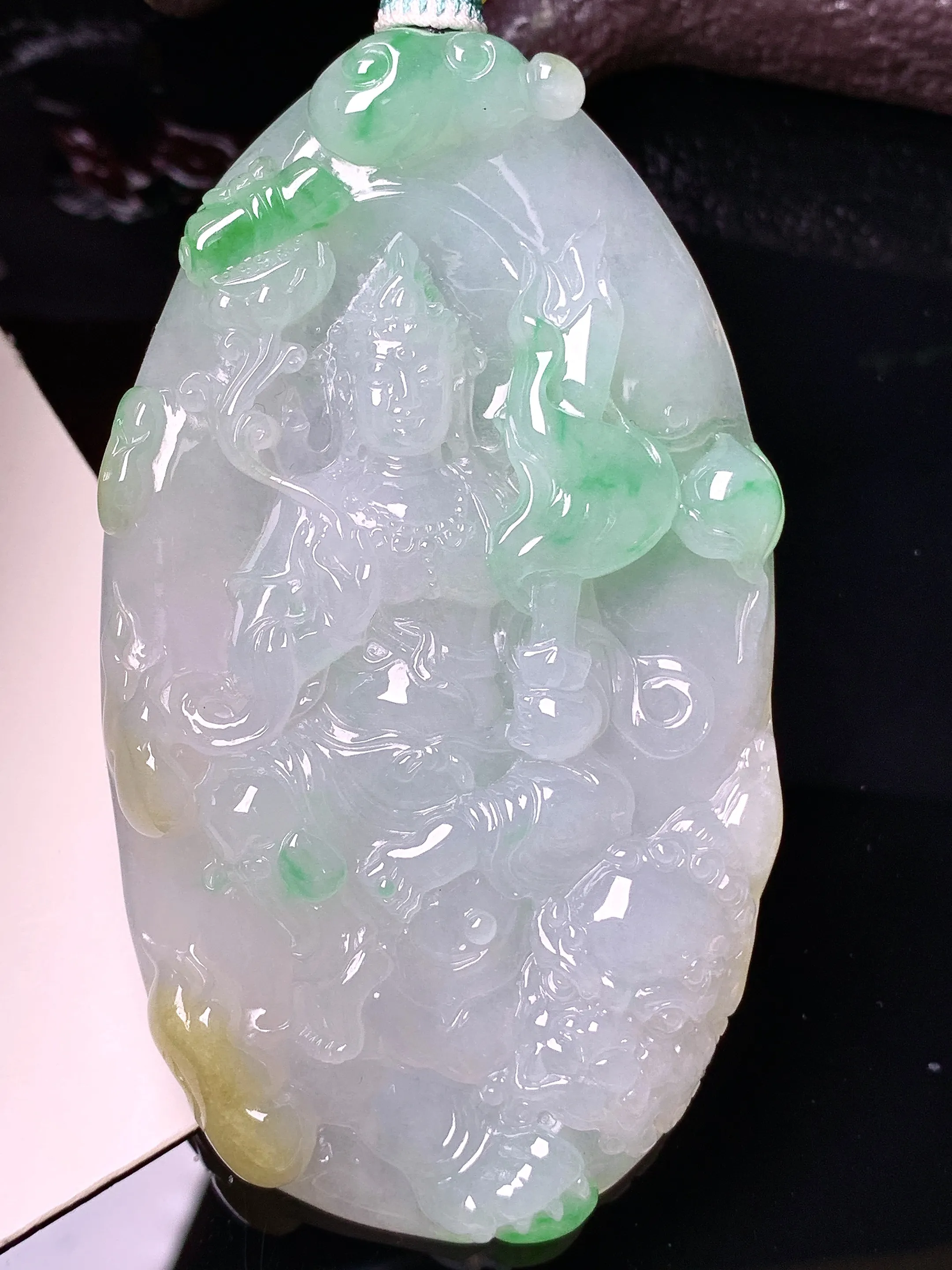 飘绿文殊观音菩萨吊坠 玉质细腻 色泽清新艳丽 整体尺寸81*46.3*8.5
