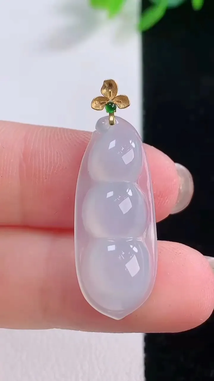 天然A货翡翠种白冰福豆吊坠,尺寸27-11.4-5.3,重量:2.52g 12月1日