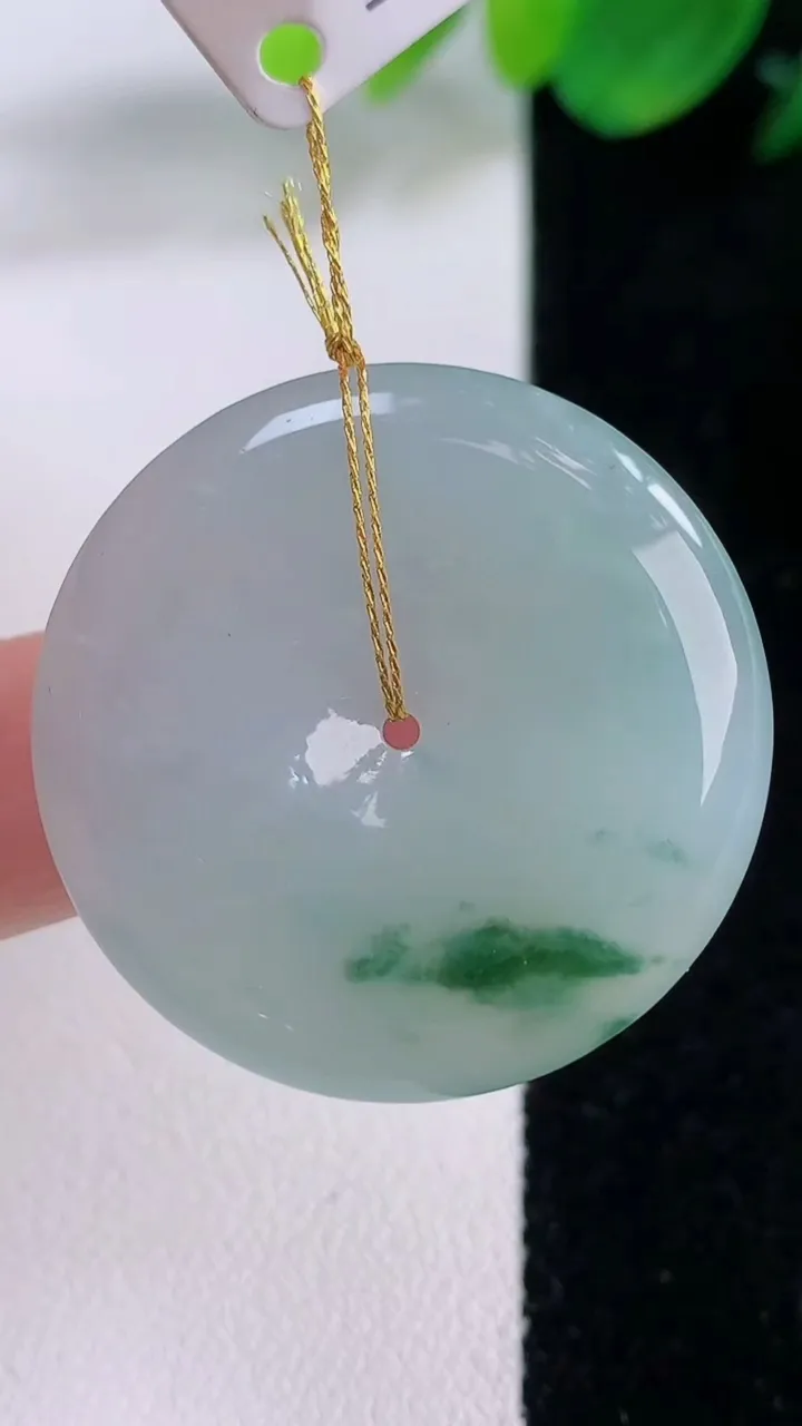 天然A货翡翠冰种飘花平安扣吊坠,尺寸25.6-4.3,重量:5.86g 12月1日