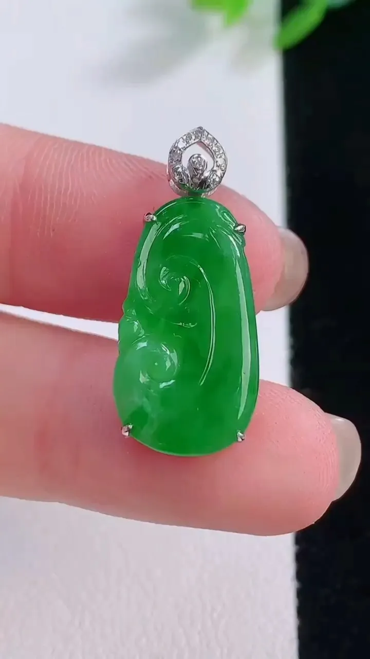 天然A货翡翠如意吊坠,尺寸20-11.6-4,重量:2.04g 12月1日