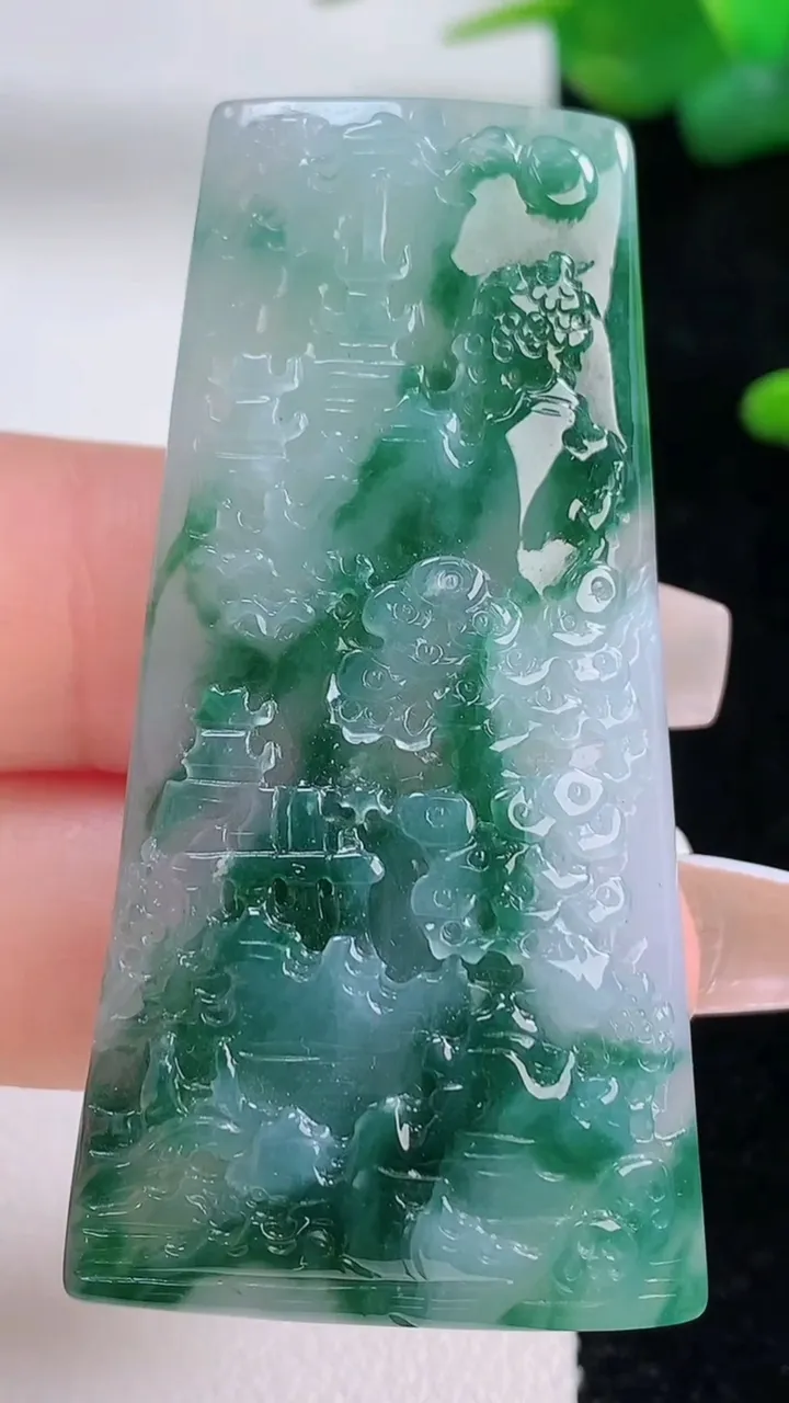 天然A货翡翠牌吊坠,尺寸51.7-27.3-5.7,重量:18.02g 12月5日
