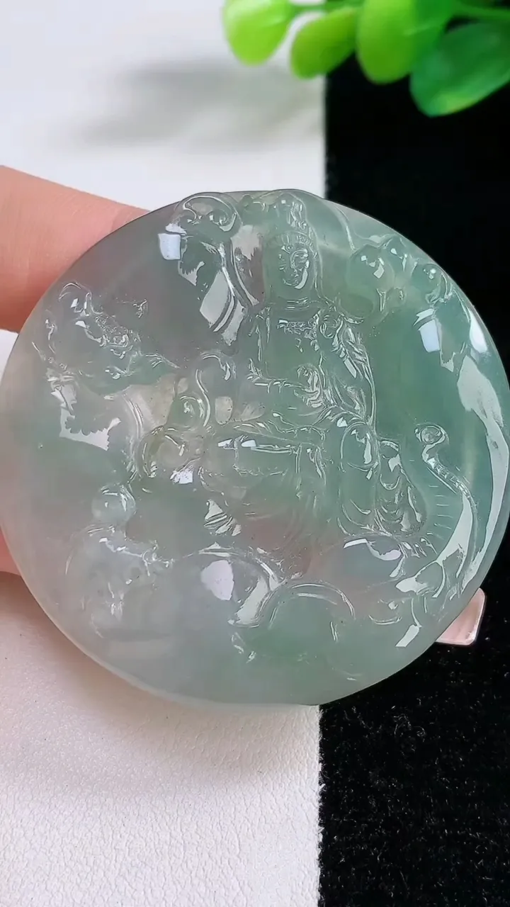天然A货翡翠普贤菩萨吊坠,尺寸65.3-42-5,重量:32.21g 12月12日