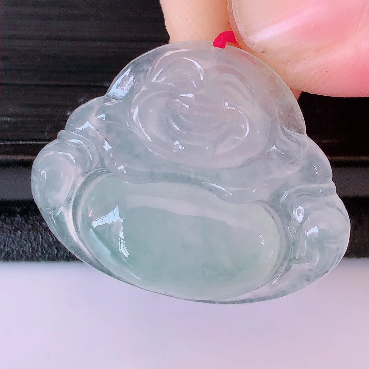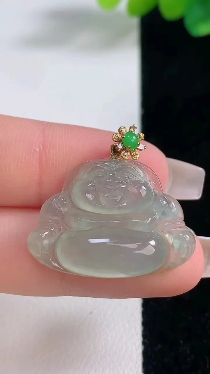 【冰种佛公吊坠】种水上乘,晶莹剔透,纯净通透,莹光感很强,18k金钻镶嵌,裸石尺寸18.2*21.8