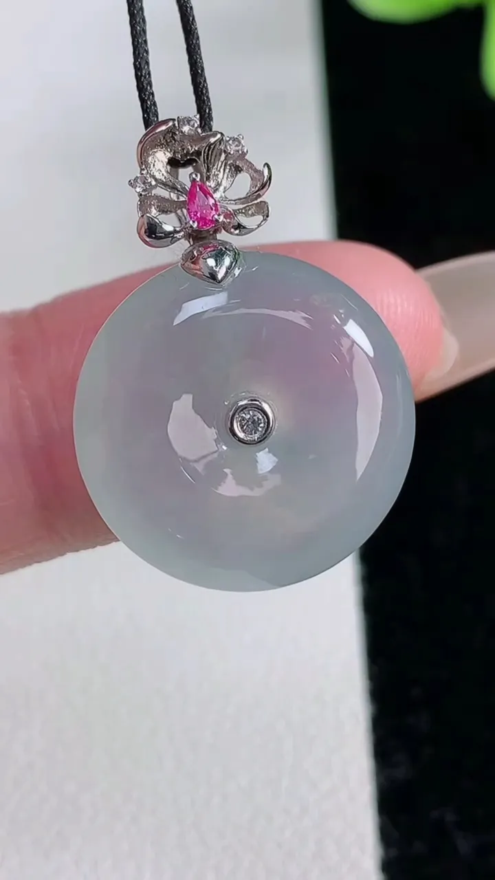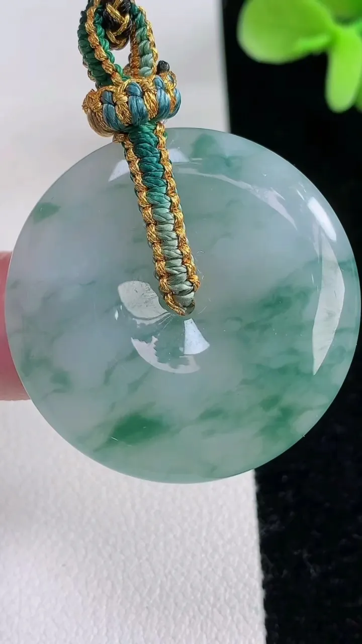 天然A货翡翠冰种飘花平安扣吊坠,尺寸32.1-5.3,重量:17.22g 12月12日